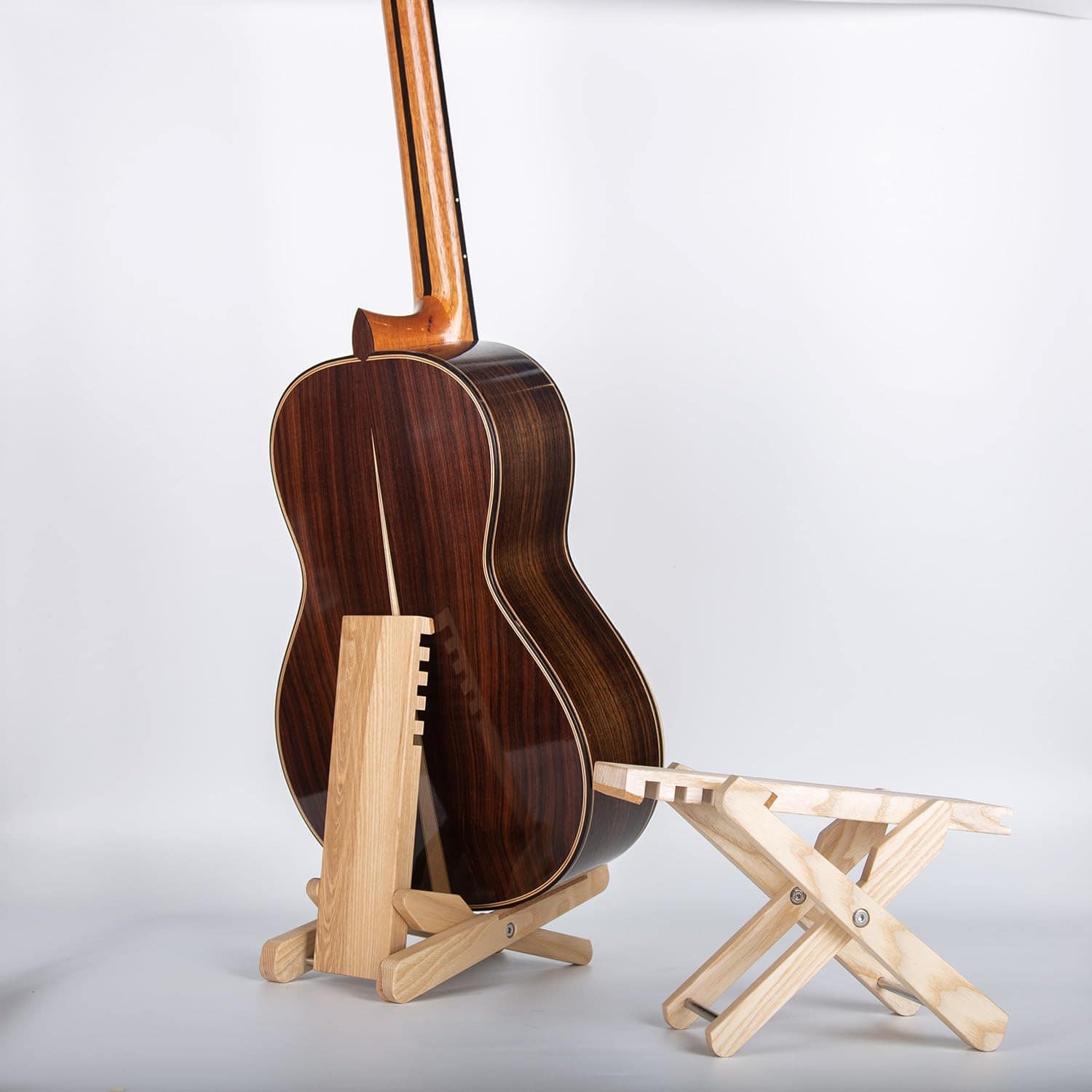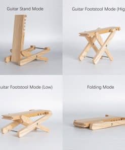 1. (Nuevo diseño de producto) El primer producto del mundo que combina un soporte de guitarra con un banquito de guitarra, proporcionando una mayor comodidad para los guitarristas. Puede utilizarse como un soporte de guitarra o como un banquito de guitarra durante la ejecución de la guitarra. También puede plegarse para facilitar su transporte y está hecho de madera maciza.