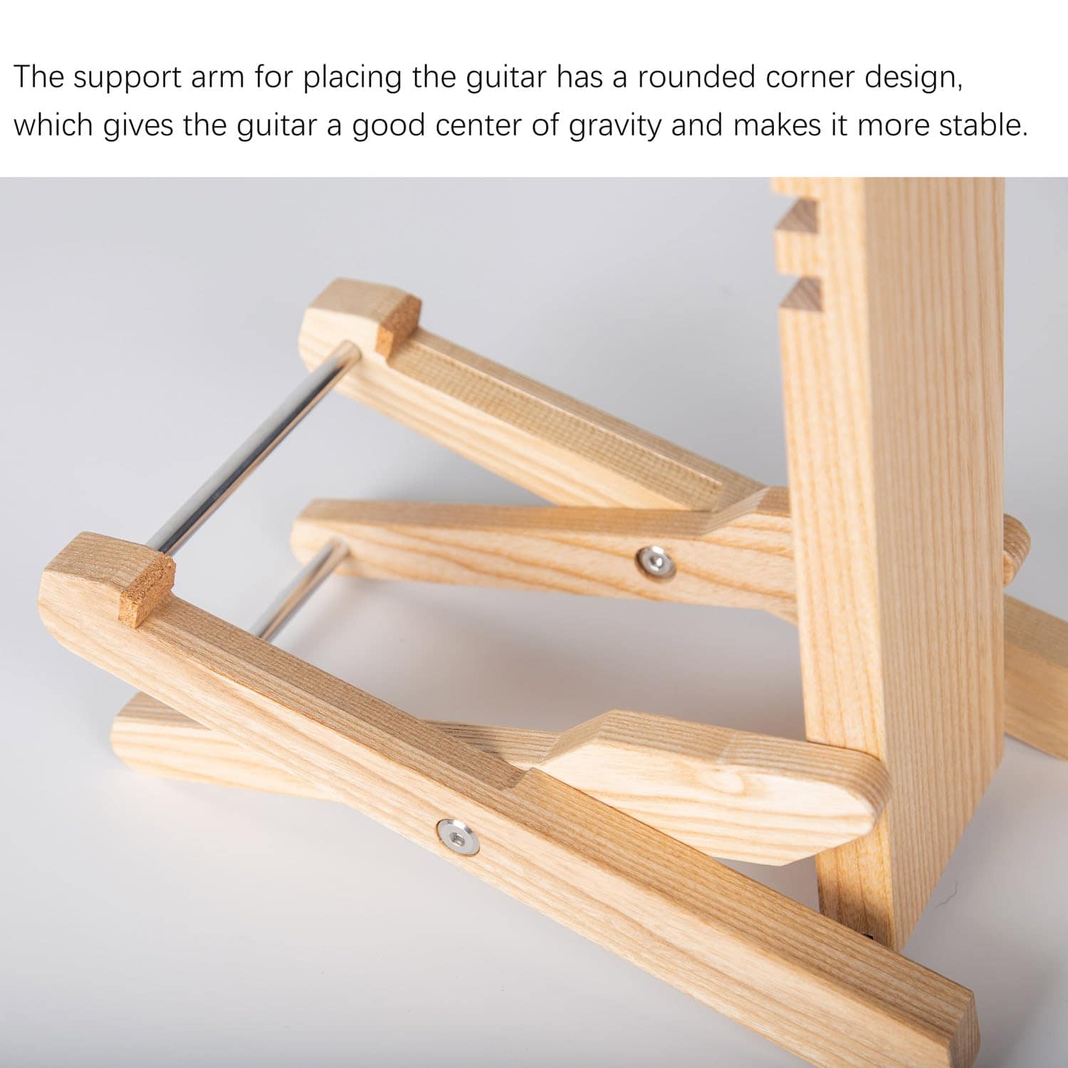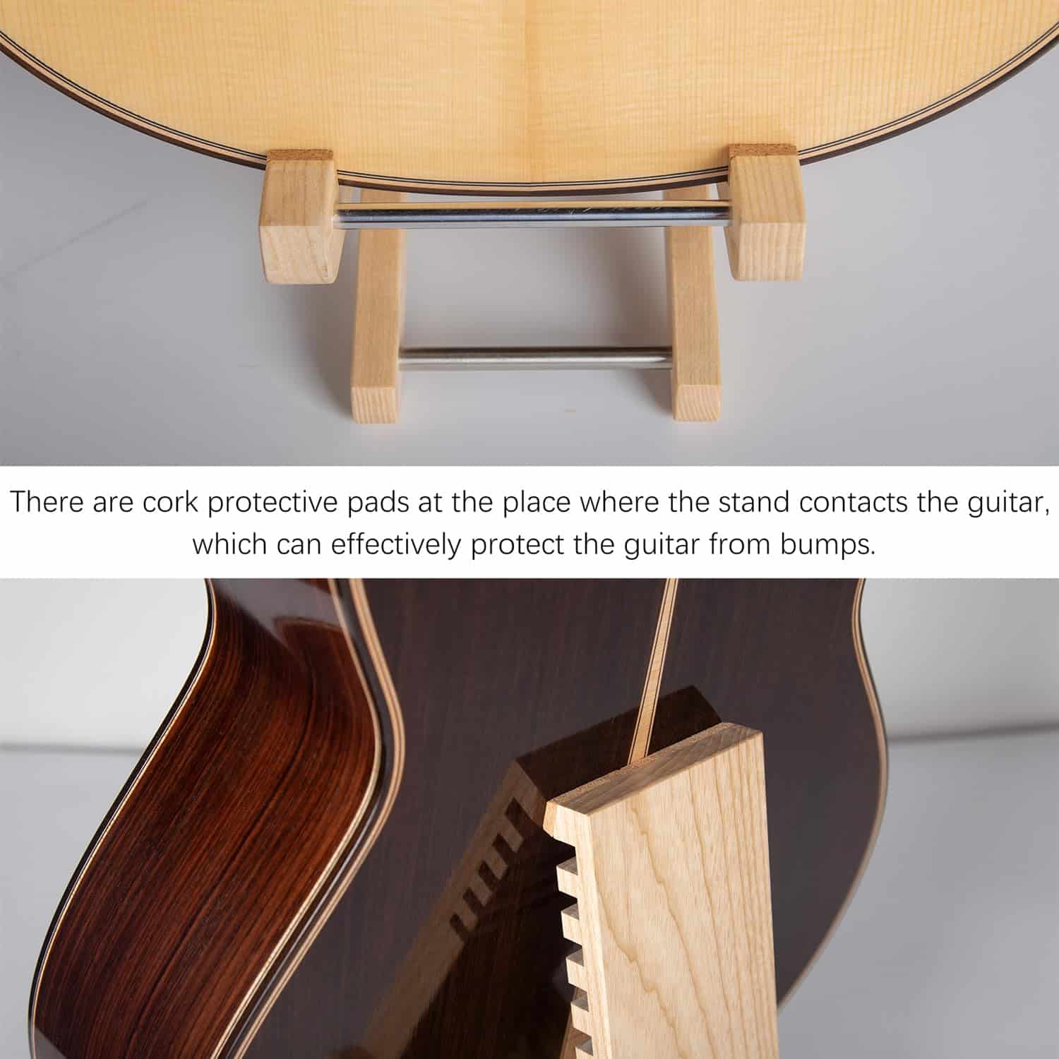 2. (Excelente estabilidad) Cuando se utiliza como soporte de guitarra, este soporte proporciona una excelente estabilidad y el ángulo de inclinación cuidadosamente diseñado de la guitarra garantiza que la guitarra tenga el mejor centro de gravedad y estabilidad. Los puntos de contacto entre el soporte y la parte posterior y delantera de la guitarra están protegidos con corcho para asegurar que la guitarra no se dañe durante el uso.