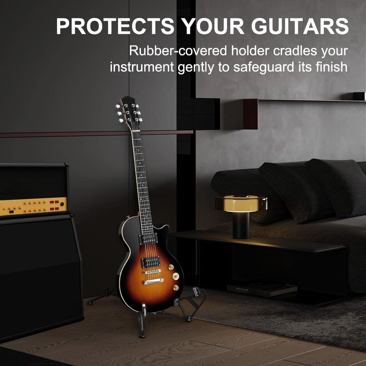 4. Acolchado de Espuma Premium – El G1 ofrece acolchado de espuma premium para sostener y proteger sus guitarras sin mancharlas, junto con patas de goma antideslizantes para una estabilidad segura, asegurando que sus guitarras no se caigan.