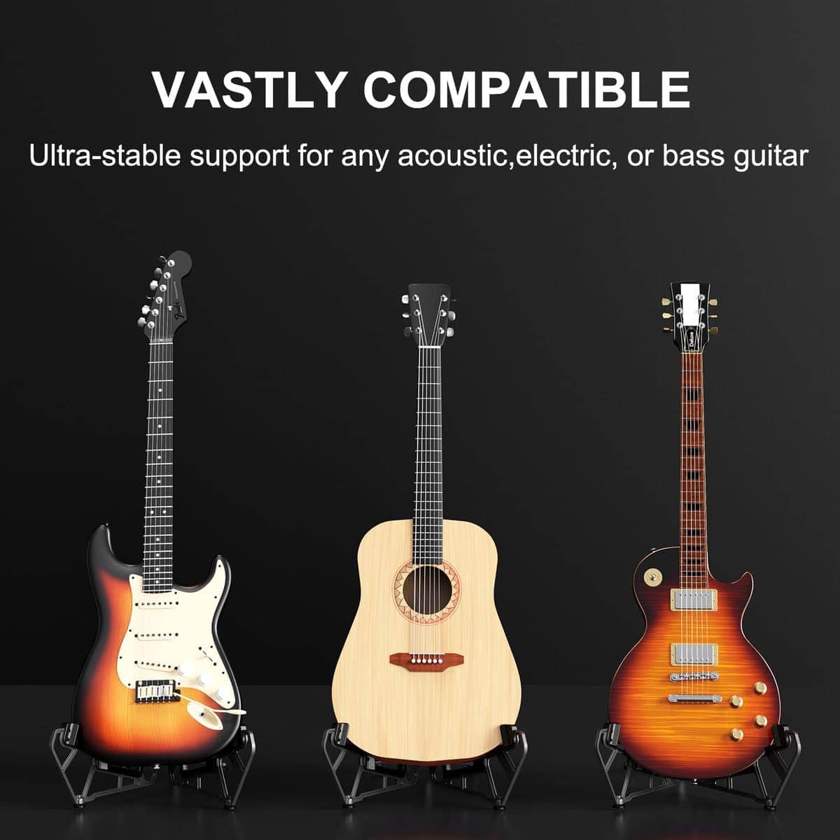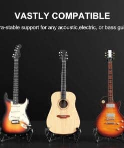 1. Ideal para Guitarras Eléctricas, Acústicas y Bajos – Diseñado para el músico en movimiento, este soporte versátil mostrará elegantemente su instrumento y se guardará fácilmente en segundos para caber en su bolso.