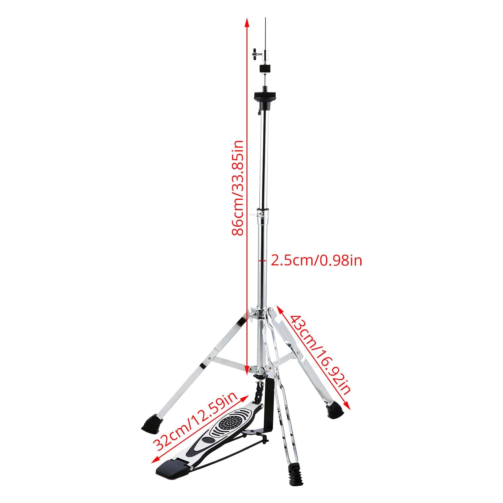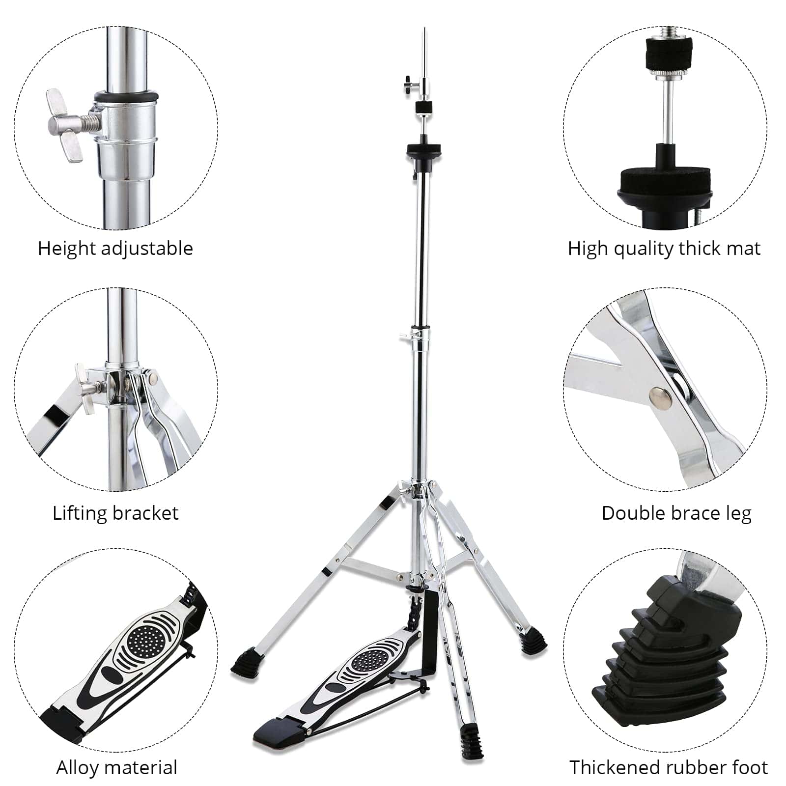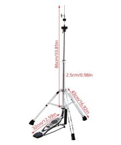 El soporte de hi hat LOLUNUT es una excelente opción para bateristas principiantes e intermedios que buscan calidad a un precio asequible. Está fabricado con una aleación resistente y estable, con patas doblemente reforzadas que cuentan con soportes de goma antideslizantes para mayor estabilidad. El pedal es duradero y suave, con tensión de resorte ajustable y transmisión por cadena para una buena acción y sensibilidad. Puede ajustar la altura y el ángulo del soporte de 39.3 a 43.3 pulgadas para adaptarse a sus requisitos de interpretación. Además, la instalación es rápida y sencilla, sin necesidad de instrucciones. Este soporte es adecuado para platillos de 13» 14» 15» 16», lo que lo hace ideal para músicos que buscan calidad a un precio asequible.