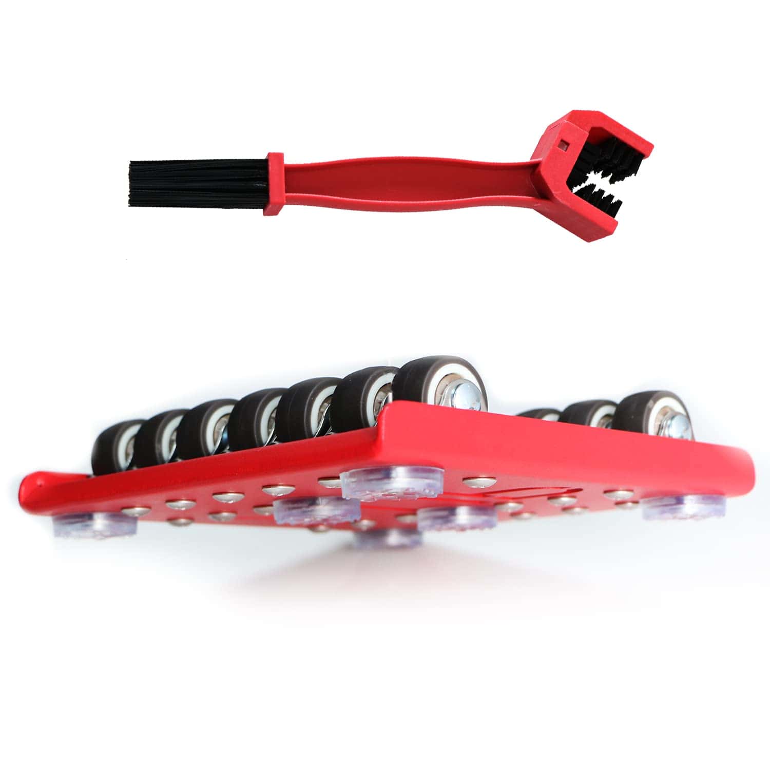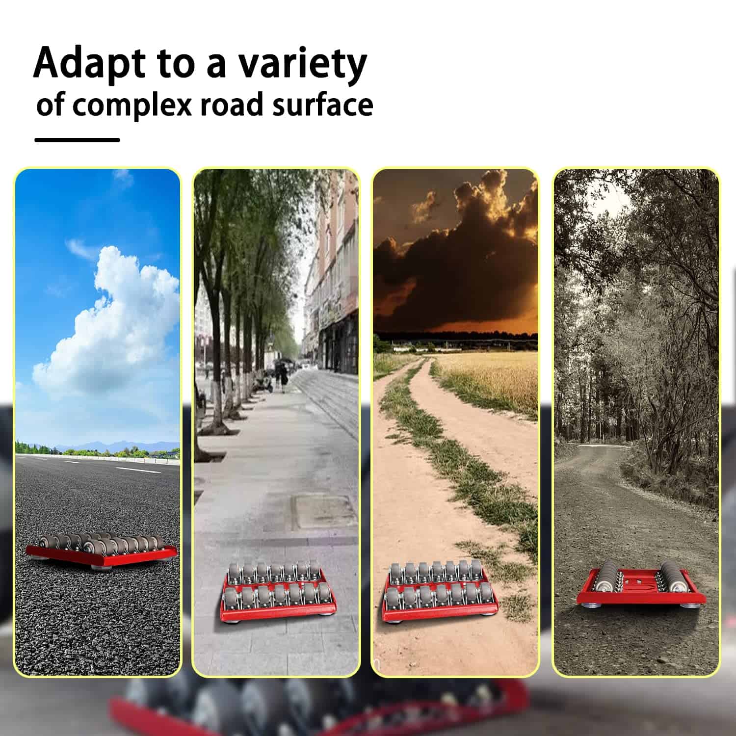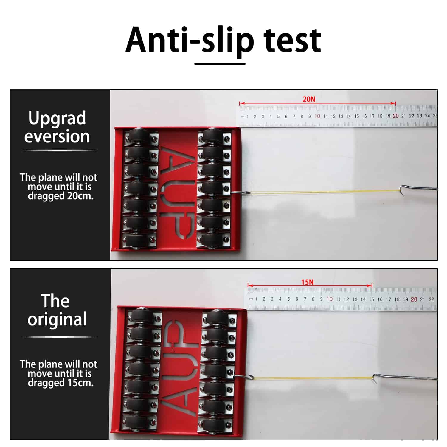 1. Diseño antideslizante: Hemos instalado dos filas de 14 ruedas independientes en el soporte. La estructura cóncavo-convexa de 7 ruedas en cada fila aumenta en gran medida la fricción de contacto entre el neumático y la rueda de soporte; Se han añadido seis almohadillas de silicona antideslizantes especialmente diseñadas en la parte inferior del soporte para aumentar la resistencia a la fricción antideslizante.
