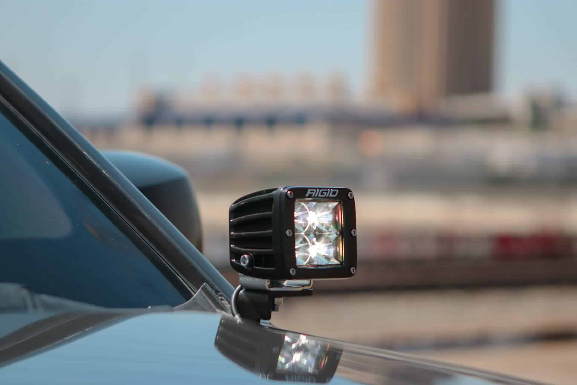 2. Se monta en la bisagra del capó del pilar A – Los soportes se montan directamente en las bisagras del capó utilizando los pernos originales del capó, y la apertura y cierre del capó no se ven afectados por las luces de zanja.