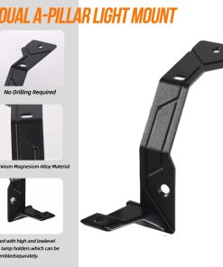 Soporte de luz dual para pilares A, diseñado para adaptarse a Jeep Wrangler JL 4xe y Gladiator JT de 2018 a 2024 (no apto para Mojave y 392). El diseño de dos montajes de luz en pilares A proporciona una vista más brillante durante la conducción sin obstrucciones. La instalación es sencilla, sin necesidad de modificaciones ni taladrado. Viene con arandelas para prevenir daños en la pintura y ruido al sujetar al vehículo. Comprometidos a brindar el mejor servicio al cliente y calidad del producto.