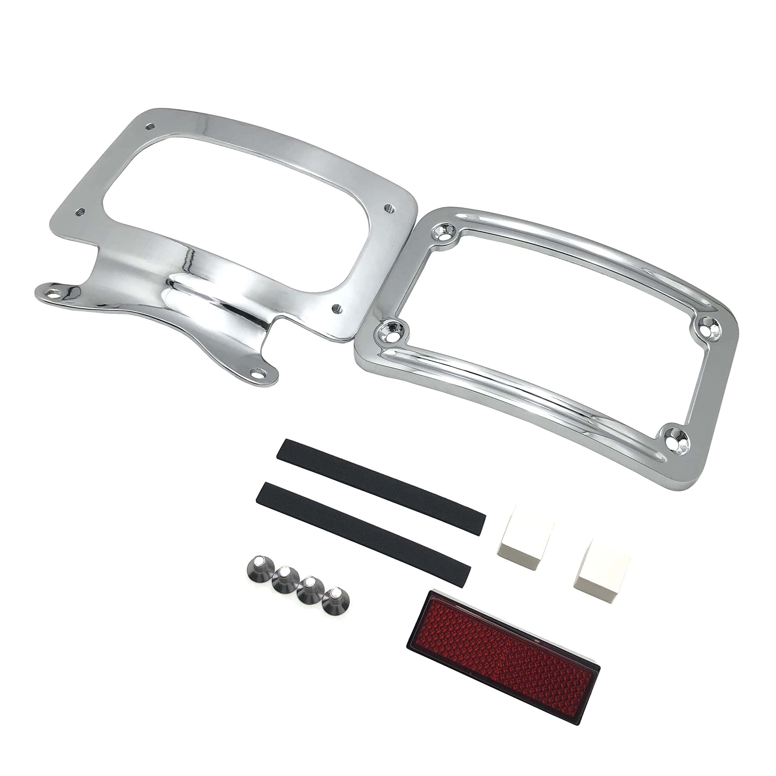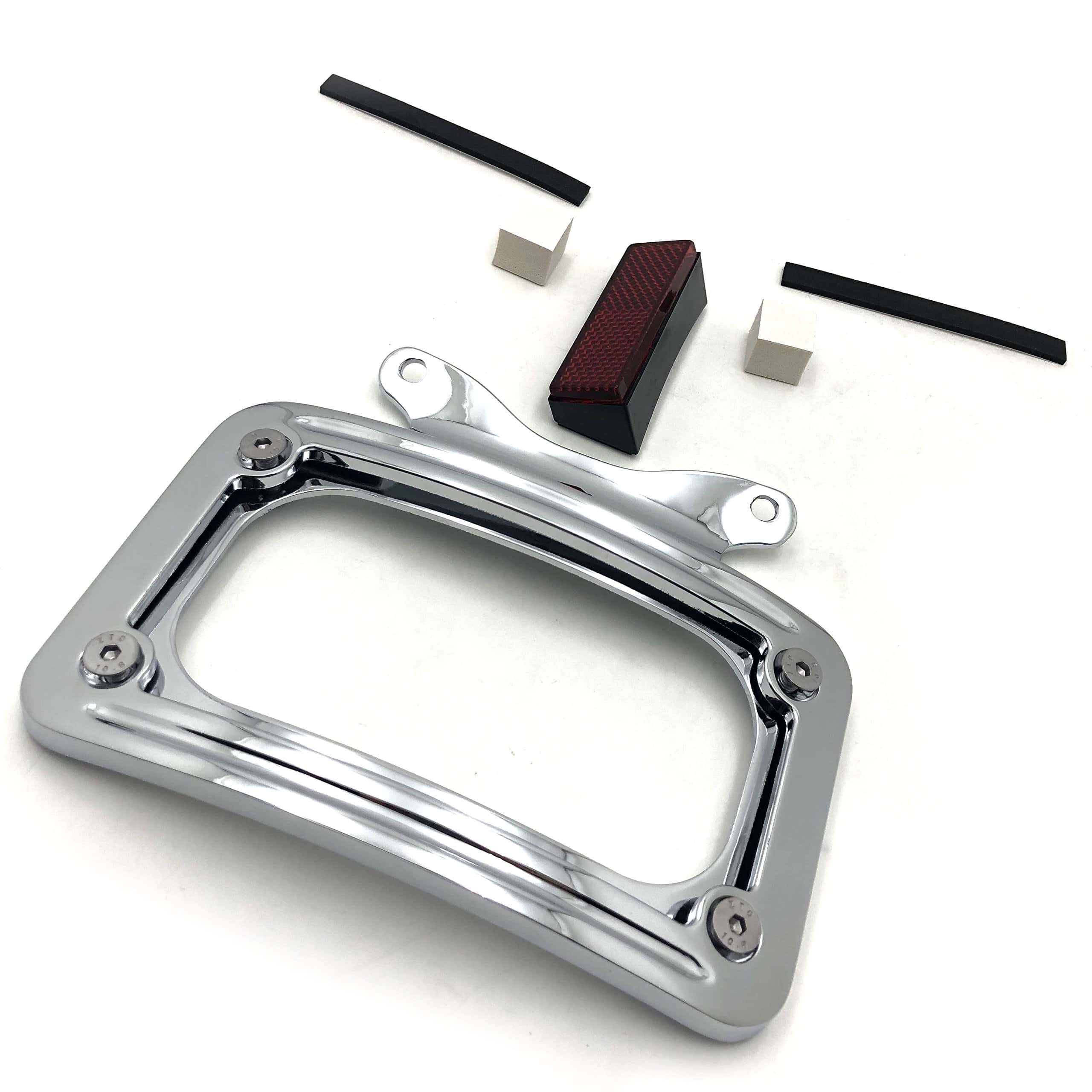 Soporte de matrícula curvo de posventa con kit de montaje. Moderno, elegante y funcional. Aplicación personalizada completa, puede requerir modificaciones. Se ajusta perfectamente al contorno curvo del guardabarros trasero. Puede funcionar con la luz trasera/barra de luces para reubicar la posición de montaje de la luz trasera/intermitente. Viene con reflector cuadrado rojo para advertencia de seguridad por la noche. Tamaño: aproximadamente 174mm x 104mm. Condición: 100% nuevo de mercado de accesorios. Cantidad: 1 unidad. Material: Aluminio Billet. Instrucciones: no incluidas. Perforado previamente para una instalación sencilla. Muy fácil de instalar. Simplemente desatornille su perno del eje, deslice esto en su lugar y vuelva a instalar el perno del eje. Compatible con modelos Harley Davidson FLHX, FLHXS, FLHXSE, FLTRX, FLTRXS y FLHXSE de 2010 en adelante. Apto para Street Glide FLHX, Street Glide Special FLHXS, Road Glide FLTRX, Road Glide Special FLTRXS en diferentes años desde 2010 hasta 2017.