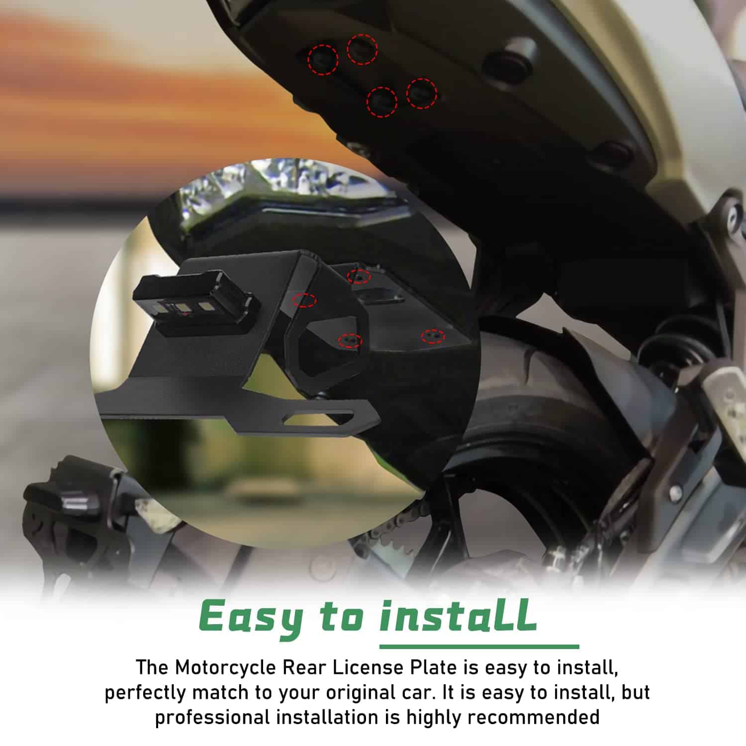 2. Simplifique los pasos de instalación, no se requiere modificaciones, cortes o perforaciones. Esta es una opción perfecta si necesita un kit de soporte de matrícula trasero con luz.