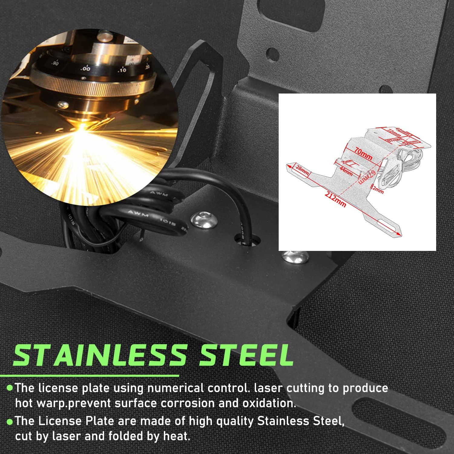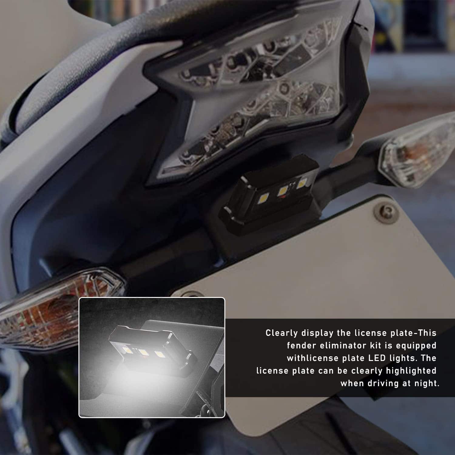 Paquete incluido: 1 pieza de soporte de matrícula trasera con luz LED y soporte de montaje