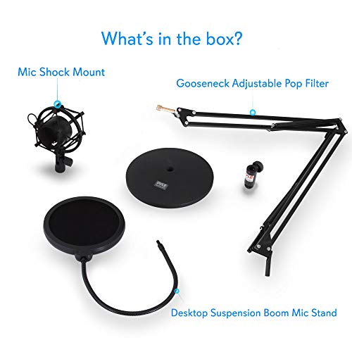 El Soporte de Micrófono de Sobremesa Pyle PMKSH24 proporciona una forma conveniente y cómoda de grabar voz con su diseño portátil y liviano y un rendimiento sonoro óptimo. Olvídese de los estudios de grabación, puede disfrutar cantando o haciendo podcast en la comodidad de su hogar. El paquete incluye el soporte de brazo de micrófono en suspensión, el filtro pop ajustable de cuello de cisne, el soporte antivibración de choque de micrófono y 2 clips de micrófono.
