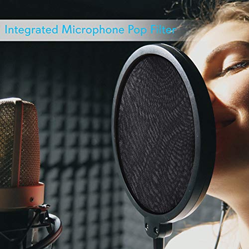 Soporte de Brazo de Micrófono en Suspensión de Sobremesa – Montaje de Micrófono de Tijera de Estudio, Incluye Filtro Pop y Soporte Antivibración de Choque