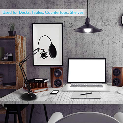 Características: Soporte de Micrófono de Brazo Giratorio con Doble Suspensión y Brazos de Soporte de Extensión de Metal Diseño Conveniente de Sobremesa Posicione su Micrófono Exactamente Donde lo Necesite Ajuste de Extensión, Ángulo e Inclinación Ayuda a Lograr un Rendimiento de Sonido Óptimo Adaptador y Rosca Estándar de Estados Unidos Filtro Pop Integrado para Micrófono Configuración Rápida: Montaje y Desmontaje Fácil de Micrófonos Construcción Resistente y Confiable de Acero Doblado Doble Perfecto para Uso en Estudio, Grabación de Podcast, Anuncios, Radiodifusión