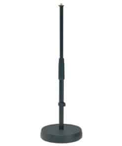 El soporte de micrófono K&M 23320 es resistente y de perfil bajo, con una base de hierro fundido pesada para máxima estabilidad. Adecuado para micrófonos de amplificadores, percusión, etc. El anillo de goma circular filtra los sonidos de pasos y reduce la transmisión de sonidos no deseados. Embrague ajustable elegante para facilitar el ajuste de altura.