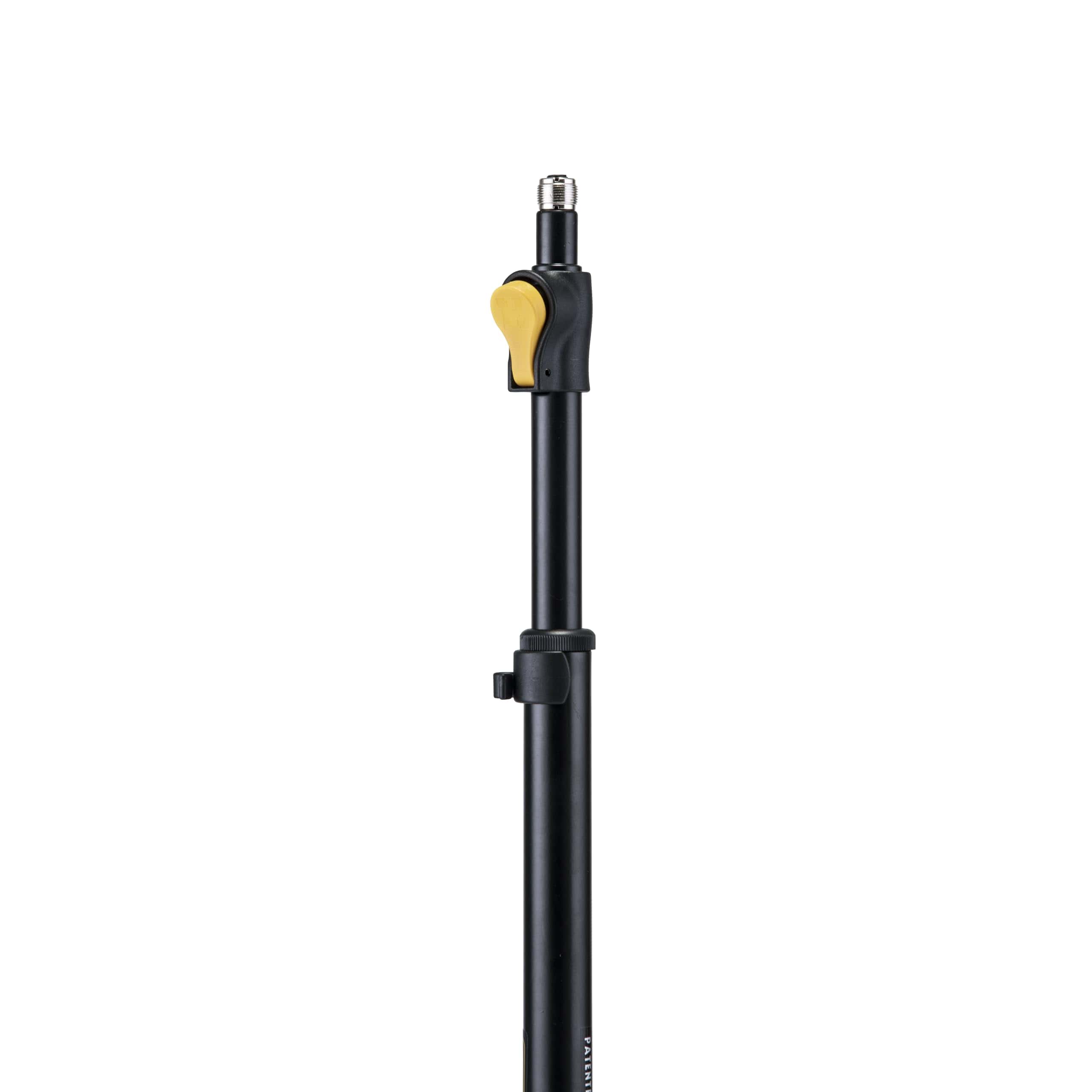 El soporte de micrófono HERCULES MS201B PLUS cuenta con el ajuste de altura EZ Grip, el adaptador EZ Adaptor Flip Clip y la base ponderada tipo «H» de HERCULES.