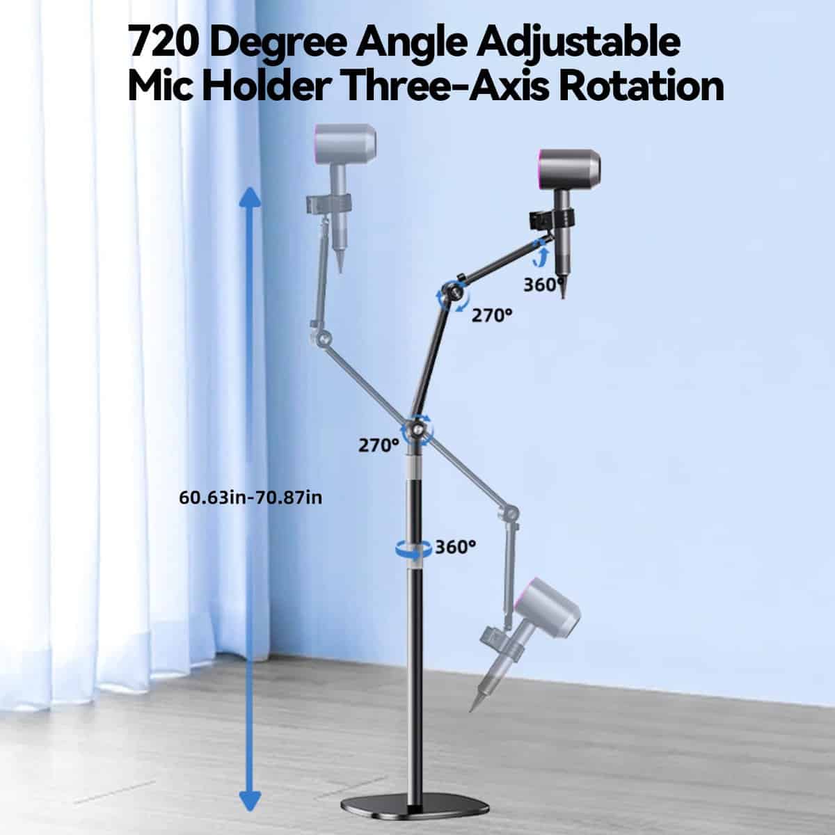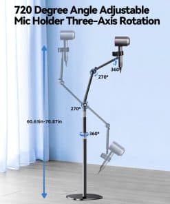 Soporte de micrófono nediea, un accesorio versátil ideal para artistas, profesionales de la música y entusiastas del audio. Este soporte de micrófono de pie con brazo boom ha sido diseñado con características innovadoras para ofrecer la máxima comodidad y rendimiento. Con su capacidad de ajuste en ángulo y altura, este soporte permite colocar el micrófono exactamente como prefieras, garantizando un rendimiento óptimo en cualquier entorno. Además de su función principal, este soporte de micrófono también puede usarse como un soporte manos libres para secador de pelo, proporcionando una solución conveniente tanto para el uso personal como profesional. Su robusta base resistente garantiza estabilidad y equilibrio para evitar caídas, lo que lo convierte en la elección perfecta para entornos profesionales. El diseño cuidadoso incluye un clip de almacenamiento de cable para mantenerlo ordenado y organizado en todo momento. ¡Obtén tu soporte de micrófono nediea hoy y disfruta de una experiencia de uso sin igual!