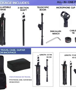 1. PORTÁTIL El Soporte de Micrófono Portátil es extremadamente compacto y cabe fácilmente en un estuche de viaje, bolso de guitarra o mochila, lo que lo hace ideal para músicos que están siempre en movimiento.