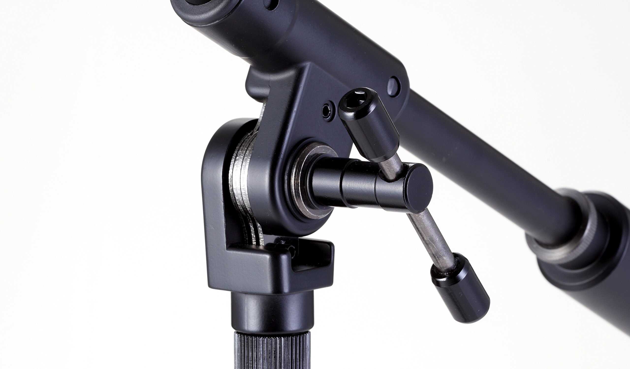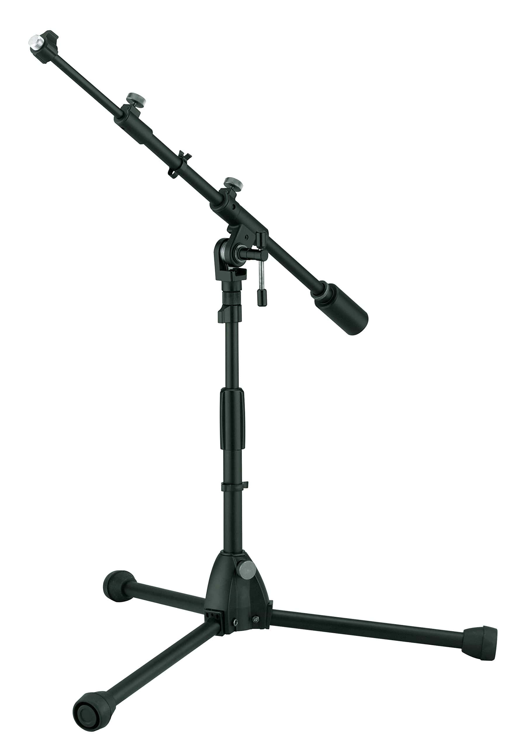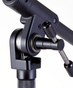 El soporte de micrófono MS756LBK de perfil bajo con brazo telescópico es tan emblemático de la serie Iron Works Studio como su hermano MS756BK, solo que más corto. El MS756LBK es útil para micrófonos de amplificadores o baterías, o cualquier otra situación donde se requiera una posición de micrófono más baja.