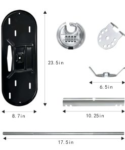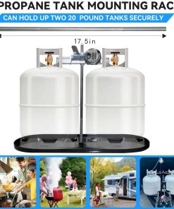 Nuestro dispositivo de Soporte de Doble Tanque de Propano cuenta con un rack de montaje y un candado, puede sostener de manera segura hasta dos tanques de 20 libras. Este soporte de tanques de propano con dispositivo de bloqueo es una excelente manera de asegurar dobles tanques de propano en camperas de RV, nadie puede robar fácilmente los tanques de propano de la campera de RV, evita el robo de tanques. Incluye bandeja inferior, barra vertical, barra de conexión, placa superior de pulgadas, placa de bloqueo y candado con contraseña. Este soporte de montaje de tanque de propano con bloqueo es resistente a los rayos UV y al óxido, construido con acero resistente recubierto de polvo. Las dimensiones totales son de 23 5/8″ de ancho por 8 1/2″ de profundidad, con la barra de 17″ como máximo en el kit de 20 libras. Fácil y rápido de instalar y usar.