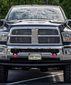 Soporte de Montaje de Gancho de Remolque Frontal y Anillo en D de Vijay, diseñado para adaptarse a modelos de Ram 2500, 3500 y 4500 fabricados entre 2010 y 2024. Fabricado en acero resistente para una durabilidad excepcional. El paquete incluye dos soportes demoníacos, dos grilletes rojos de 3/4 de pulgada y 2 aislantes para un uso conveniente. Con una instalación sencilla que no requiere modificaciones ni perforaciones, este soporte es la solución perfecta para reemplazar el gancho de remolque del parachoques delantero de fábrica. Compatible con la placa base de fábrica, pero no adecuado para placas base de mercado secundario.