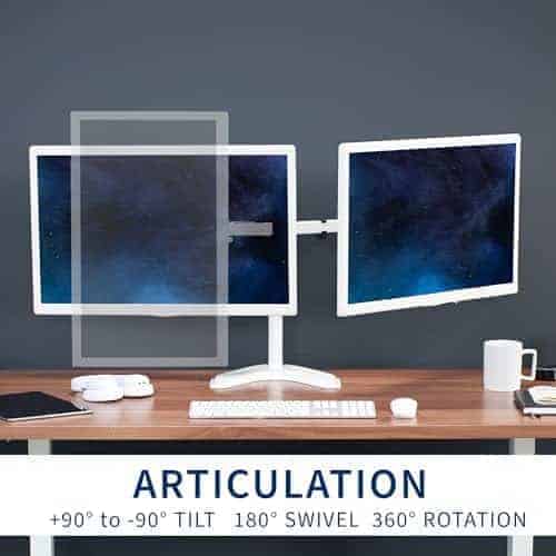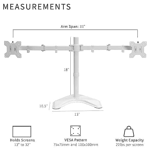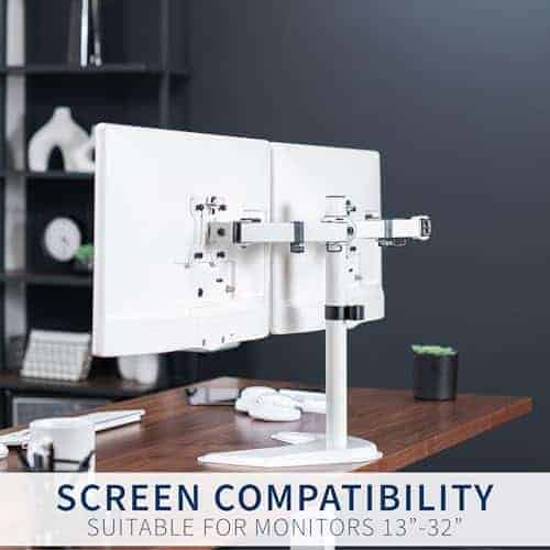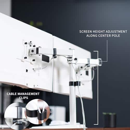 ¡Mejora la visualización de tu monitor y disfruta de ángulos de visión ergonómicos con el Soporte de Escritorio para Monitor Doble Blanco (STAND-V032FW) de VIVO! ¡Este soporte de alta resistencia cuenta con articulación de brazos y ajuste de altura del monitor para una posición óptima de la pantalla, placas de montaje VESA desmontables para una instalación fácil, gestión integrada de cables para una apariencia organizada, y más! La versatilidad de la colocación de la pantalla permite una visualización ergonómica que fomenta una postura corporal adecuada y ayuda a reducir la fatiga y la tensión en el cuello, los hombros y los ojos. La base de perfil bajo libera espacio valioso en el escritorio y mantiene tu equipo seguro y protegido.