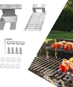 Soporte de montaje de la parrilla BBQ: Hecho de acero inoxidable duradero 304 (0.32 libras). Tamaño del soporte del motor: Diseñado para adaptarse a la mayoría de los soportes de montaje de motores de 3″ (placa de 2.9″). Montaje versátil: Pre-estampado con varias posiciones de agujeros para que coincida con su parrilla; en algunos casos pueden ser necesarios agujeros adicionales (incluye tornillos y tuercas). Protección del motor: Mantiene el motor alejado de los lados de la parrilla para prevenir el sobrecalentamiento o daño. Piezas incluidas: El kit contiene soporte del motor, soporte de la parrilla, 4 tornillos, 4 tuercas de bloqueo, 8 arandelas y una llave Allen. Video instructivo: Busque «21909 rotisserie chicken motor mounting bracket bbq grill fixturedisplays» en YouTube.