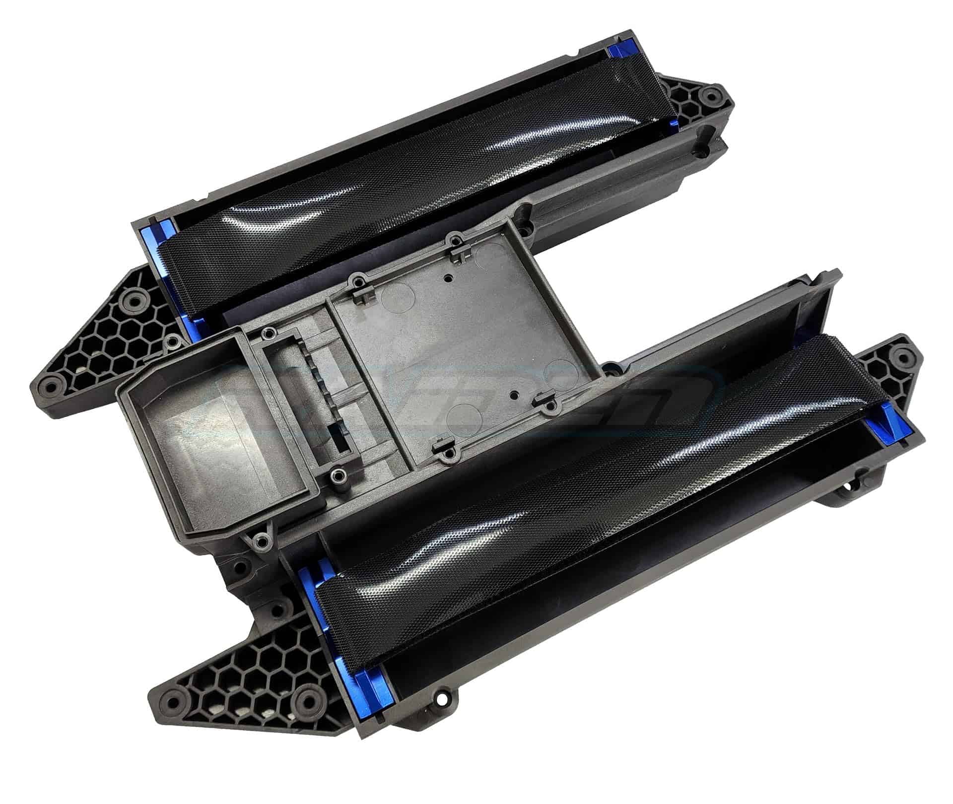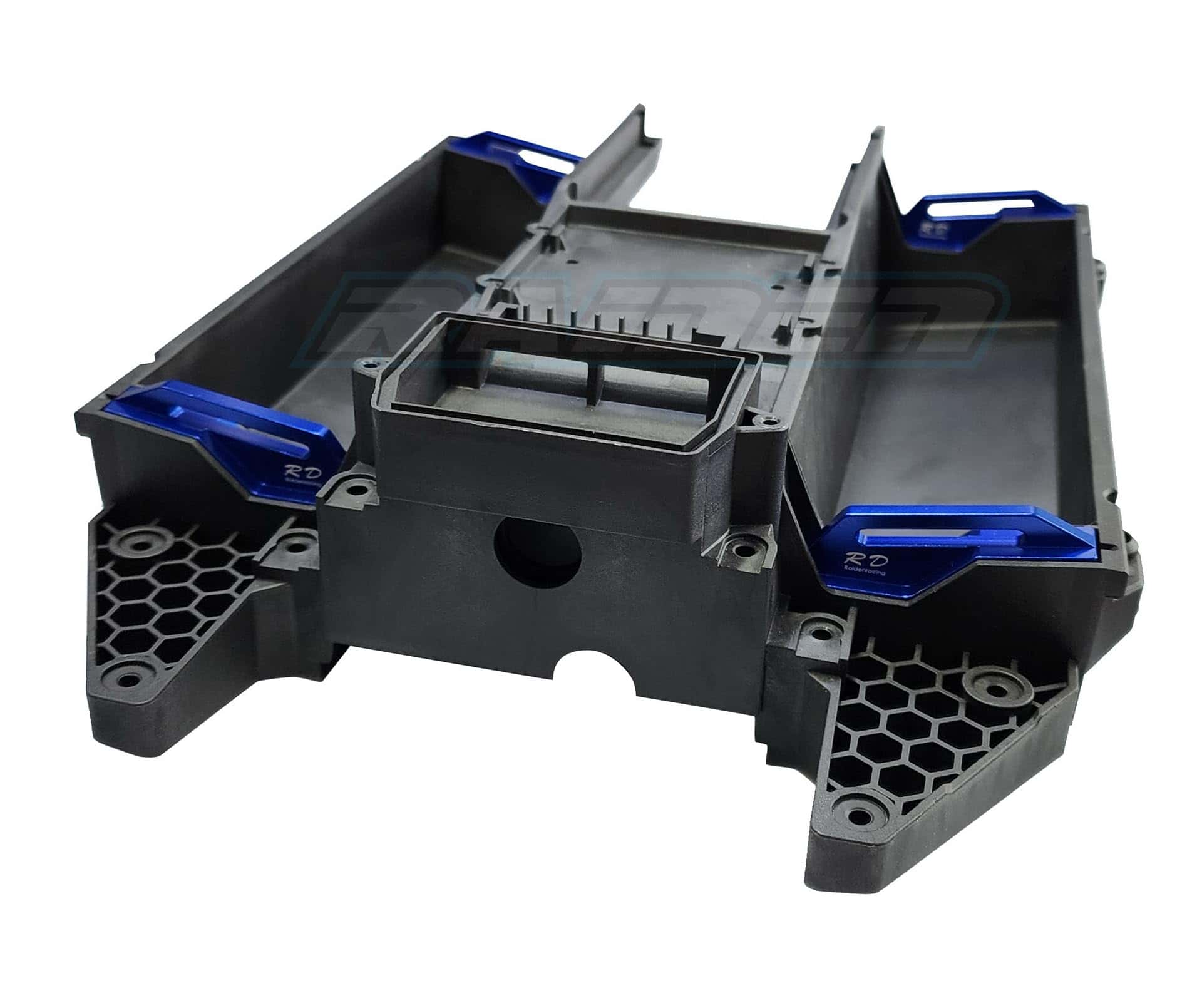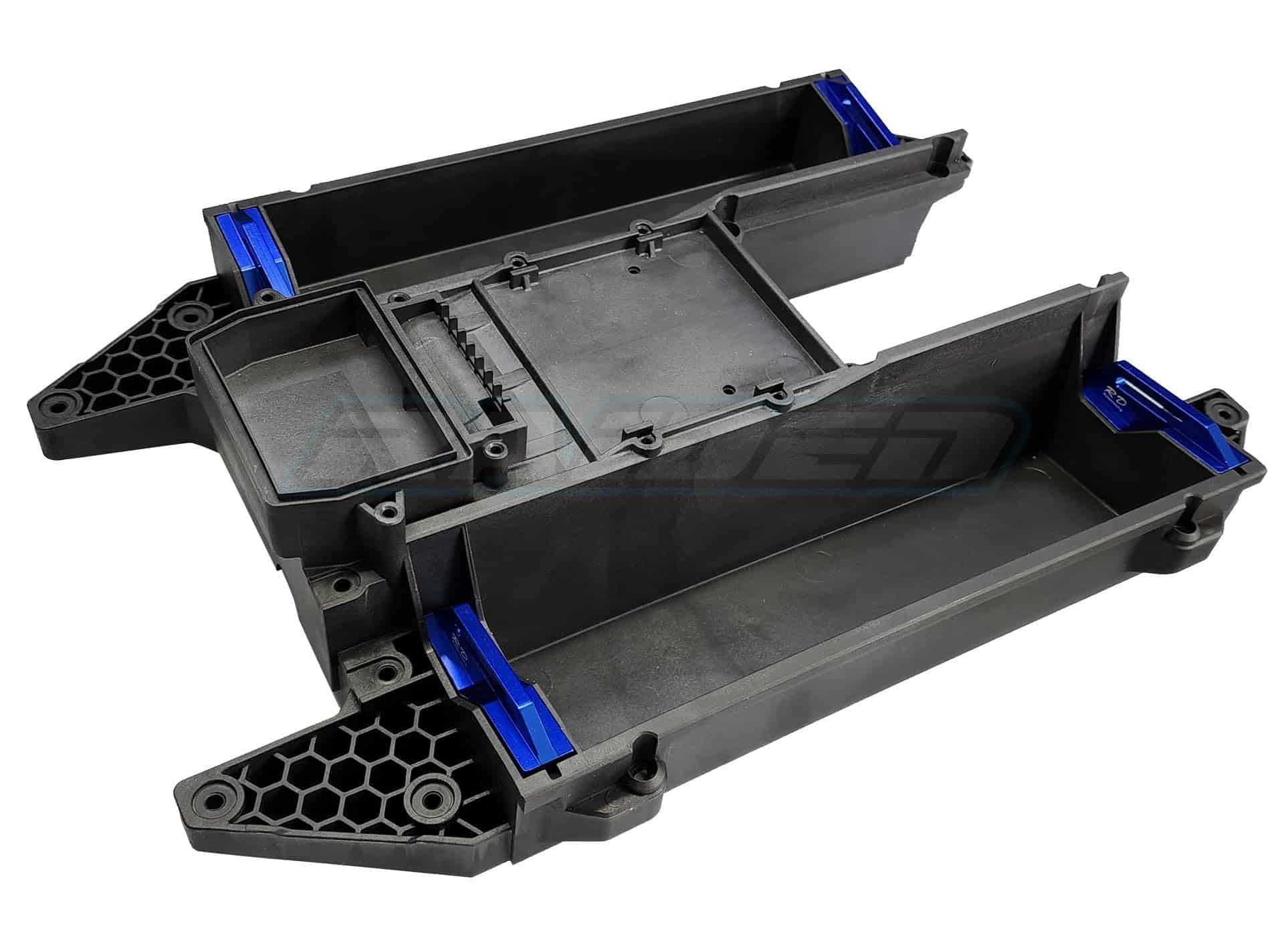 Soporte de montaje para batería alta de aleación de aluminio para Traxxas 1/6 XRT – Plata. Atención: Este artículo solo incluye el soporte de la batería, el chasis en la imagen no está incluido. Incluye: Montura de correa x 4; Correa x 2; Tornillo x 4.