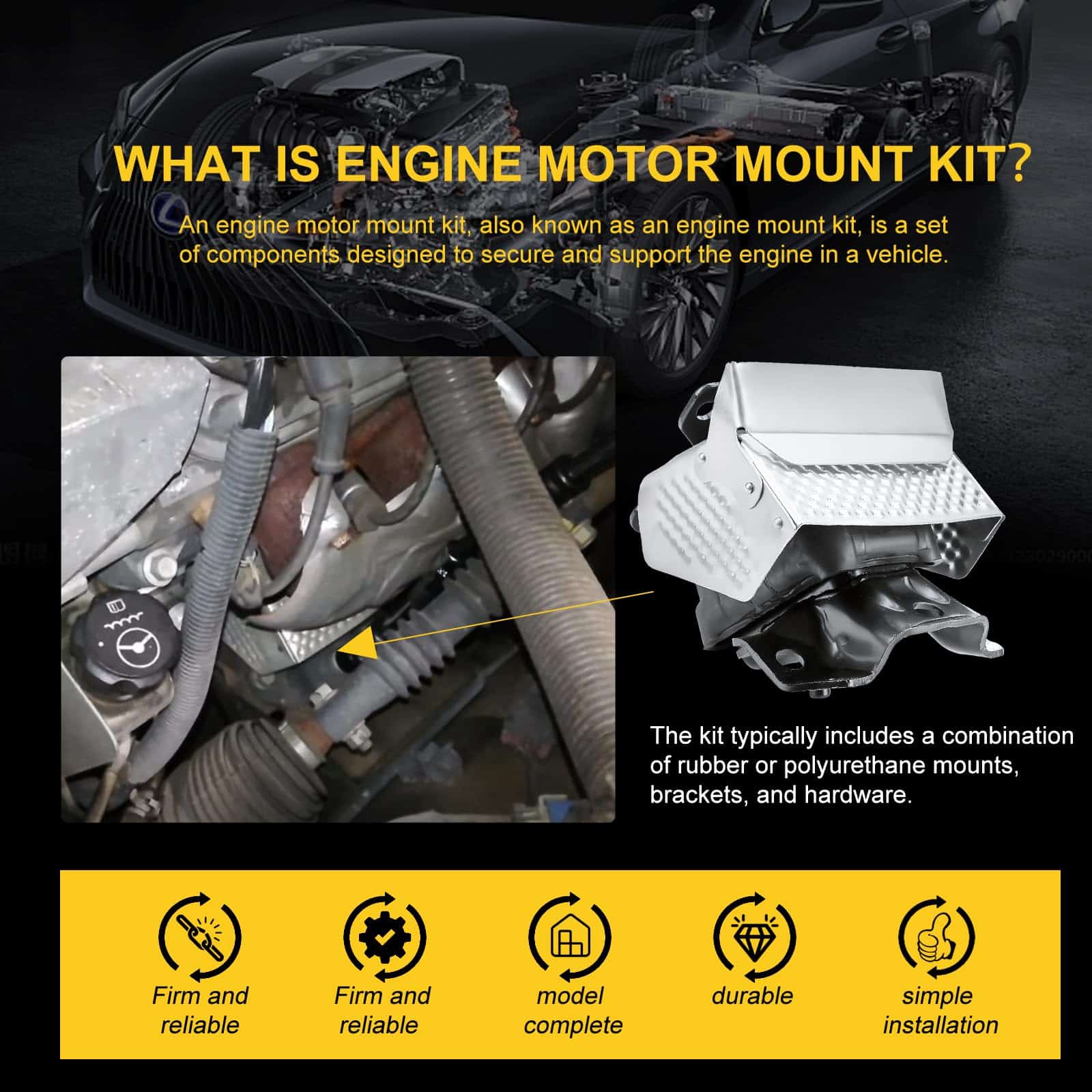 5. El kit incluye 1x Kit de Soporte de Motor del Motor