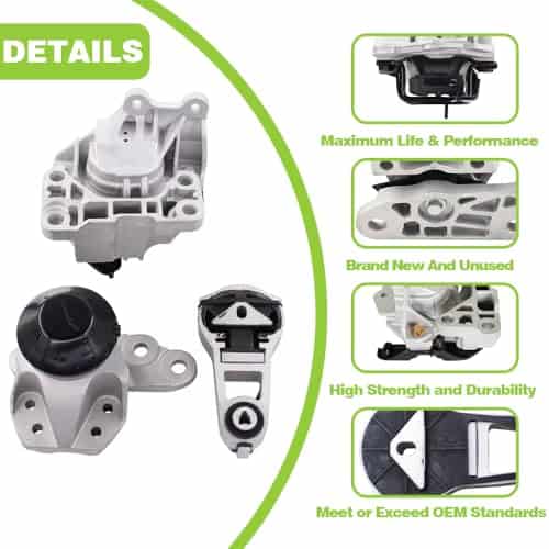 Además, este conjunto de soporte de motor y transmisión mejora notablemente la experiencia de conducción al reducir las vibraciones del motor y el ruido, lo que resulta en un viaje más suave, silencioso y cómodo. También ayuda a mantener la estabilidad y seguridad óptimas del vehículo.