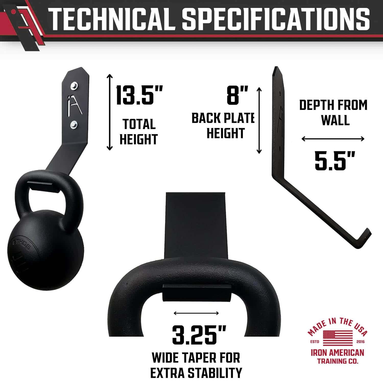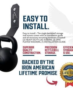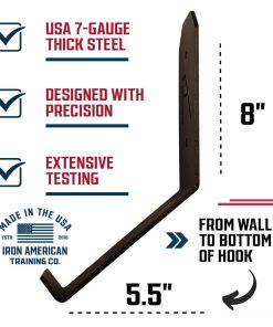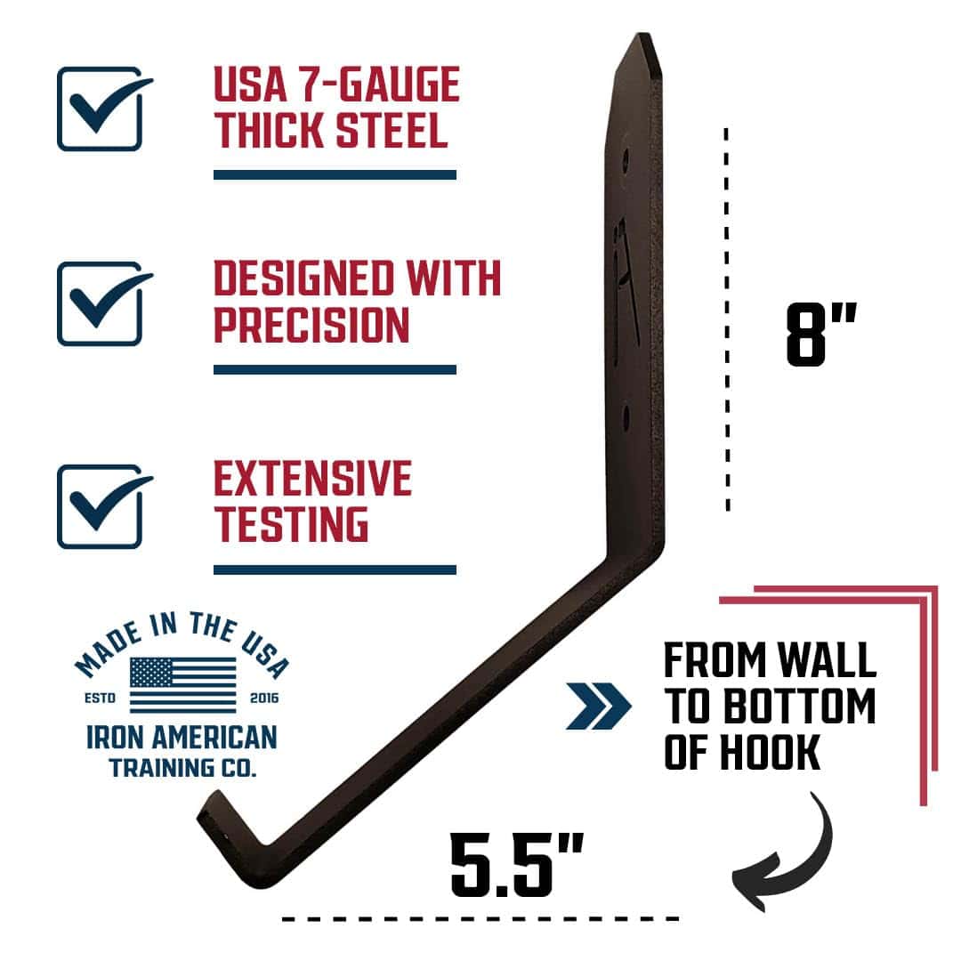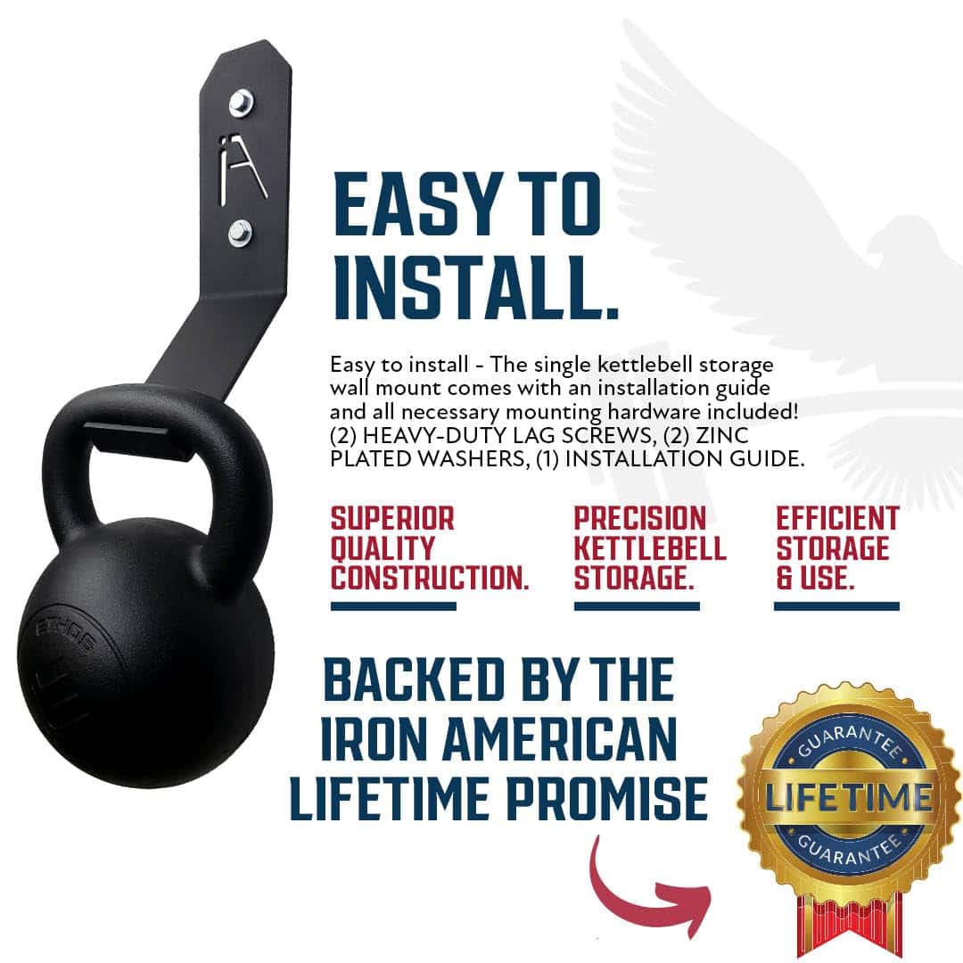 5. Compra con Confianza: Nuestros ganchos de pared personalizados para pesas rusas están hechos de acero americano de alta calidad. Respaldado por la Promesa Iron American y soporte al cliente 24/7 en EE. UU., puedes confiar en la calidad y confiabilidad de nuestros soportes de almacenamiento de equipos de fitness.