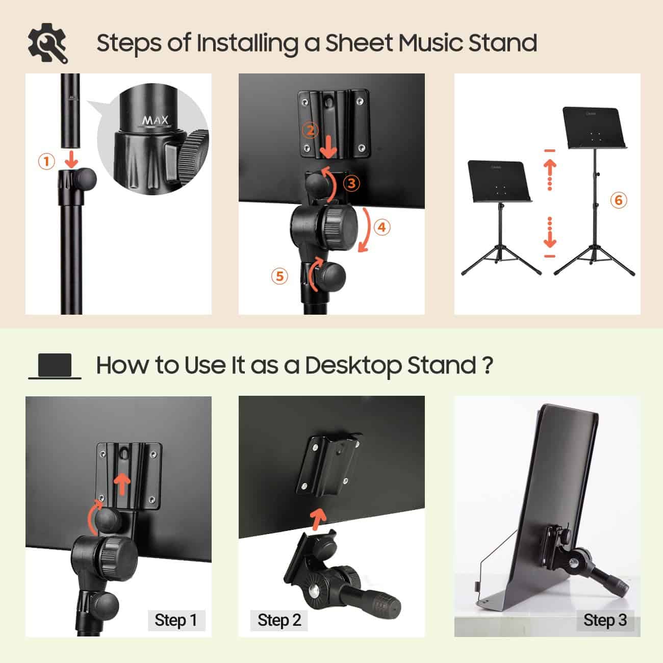 Soporte de Partituras 5 en 1 de CAHAYA: Dual-Use, Ajustable