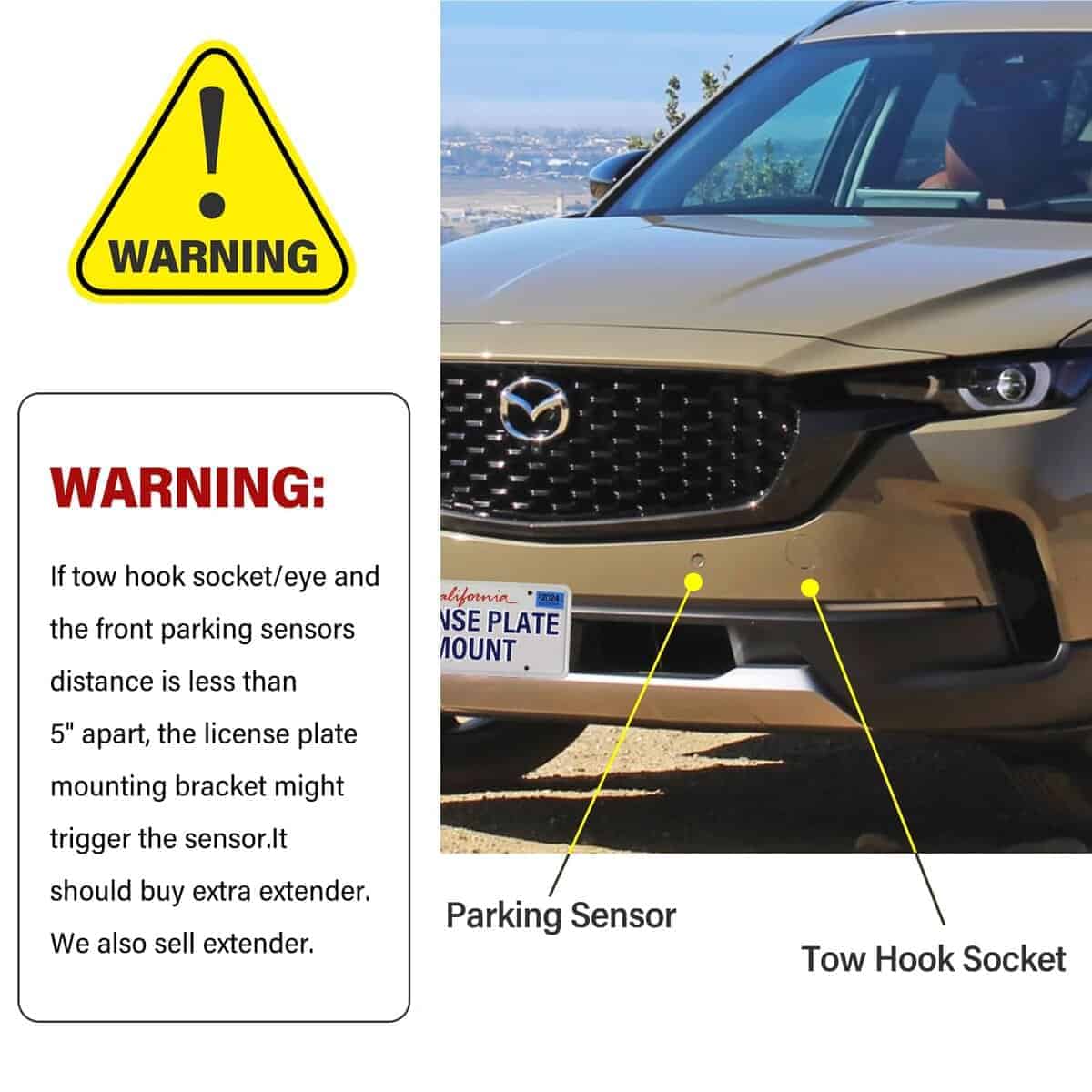 – Totalmente cumplido: el soporte de placa de licencia es adecuado para su uso en EE. UU. y Canadá. No interfiere con sensores. No interfiere con pegatinas.
