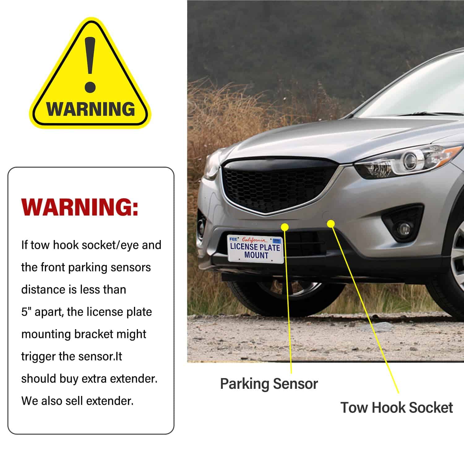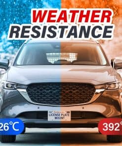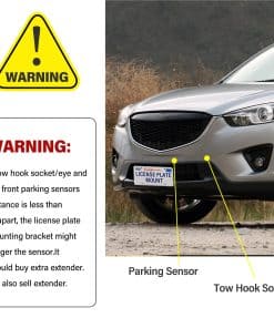 4. INSTALACIÓN SIN RIESGOS: Instalación fácil y sin riesgos, puede utilizar los agujeros de remolque existentes en el parachoques, atornillar directamente en los agujeros de remolque delanteros del automóvil, no es necesario perforar agujeros o modificar en el automóvil nuevo, puede instalar el marco de la placa de matrícula en minutos.