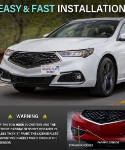 3. NO SE REQUIERE MODIFICACIÓN: El marco de la placa de matrícula viene con 4 ubicaciones de montaje para evitar que bloquee la entrada de aire / luces / sensores, no es necesario taladrar o modificar, simplemente atorníllelo en el área / orificio del gancho de remolque.