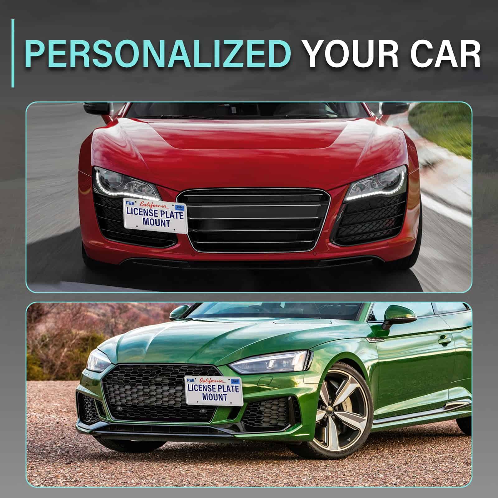 4. KIT DE SOPORTE DE PLACA DE MATRÍCULA: El soporte de etiqueta de matrícula es ajustable y giratorio, para que pueda ajustarlo a un ángulo preferido. El nuevo soporte de placa de matrícula mejorado hace que su automóvil se vea más elegante y moderno.