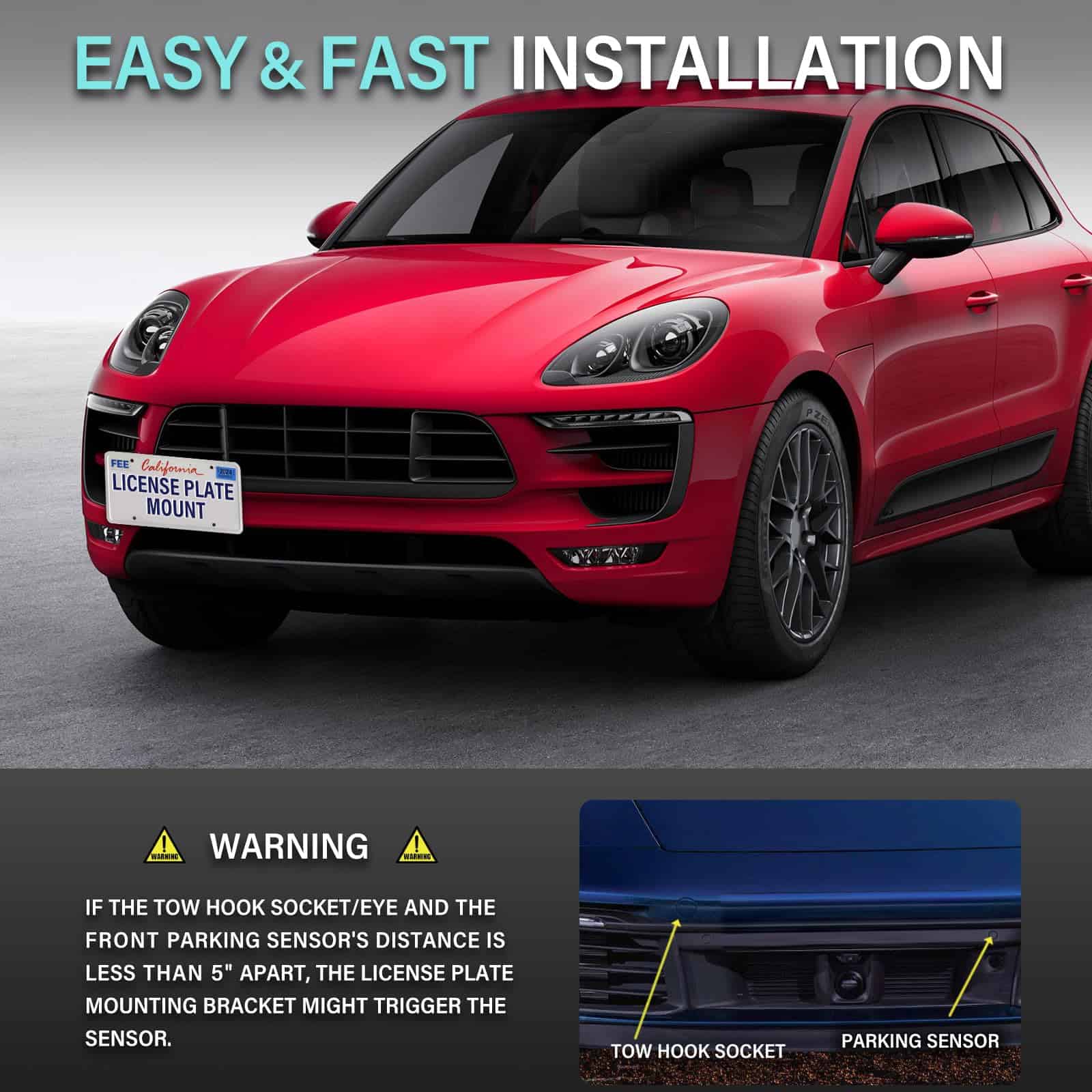 1. AJUSTE: Verifique que el año y modelo de su vehículo estén en la lista de ajuste a continuación, este no es una pieza universal: Compatible con Porsche 2014-2024 Macan; Compatible con Audi 2016 en adelante Q7. 2. MARCOS DE PLACA DE MATRÍCULA NEGRA: Hechos de acero recubierto de polvo con acabado negro mate de alta calidad, incluso si están expuestos al viento y la lluvia durante todo el año, estos marcos no se oxidarán. 3. NO SE REQUIERE MODIFICACIÓN: El marco de la placa de matrícula cuenta con 4 ubicaciones de montaje para evitar que la placa bloquee las aberturas de entrada / luces / sensores, no se requiere taladrar ni modificar, se atornilla directamente en el área / agujero del gancho de remolque. 4. KIT DE SOPORTE DE PLACA DE MATRÍCULA: El soporte de la placa de matrícula es ajustable y giratorio, para que pueda ajustarlo a un ángulo preferible. El nuevo soporte de placa de matrícula actualizado hace que su automóvil luzca más fresco y elegante. 5. MEJOR EXPERIENCIA: Estamos comprometidos a proporcionar a los clientes accesorios automotrices de calidad premium para satisfacer todas sus necesidades. Si tiene alguna pregunta, no dude en contactarnos y haremos todo lo posible para ayudarlo