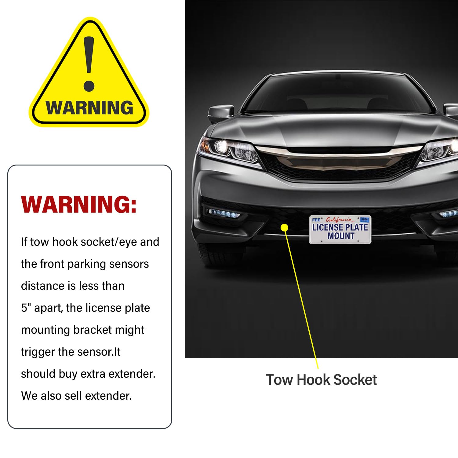 4. INSTALACIÓN SIN RIESGOS: Instalación fácil y sin riesgos, puede utilizar los agujeros de remolque existentes en el parachoques, atornillar directamente en los agujeros de remolque delanteros del coche, no es necesario perforar agujeros o modificar en el coche nuevo, puede instalar el marco de la placa de matrícula en minutos.