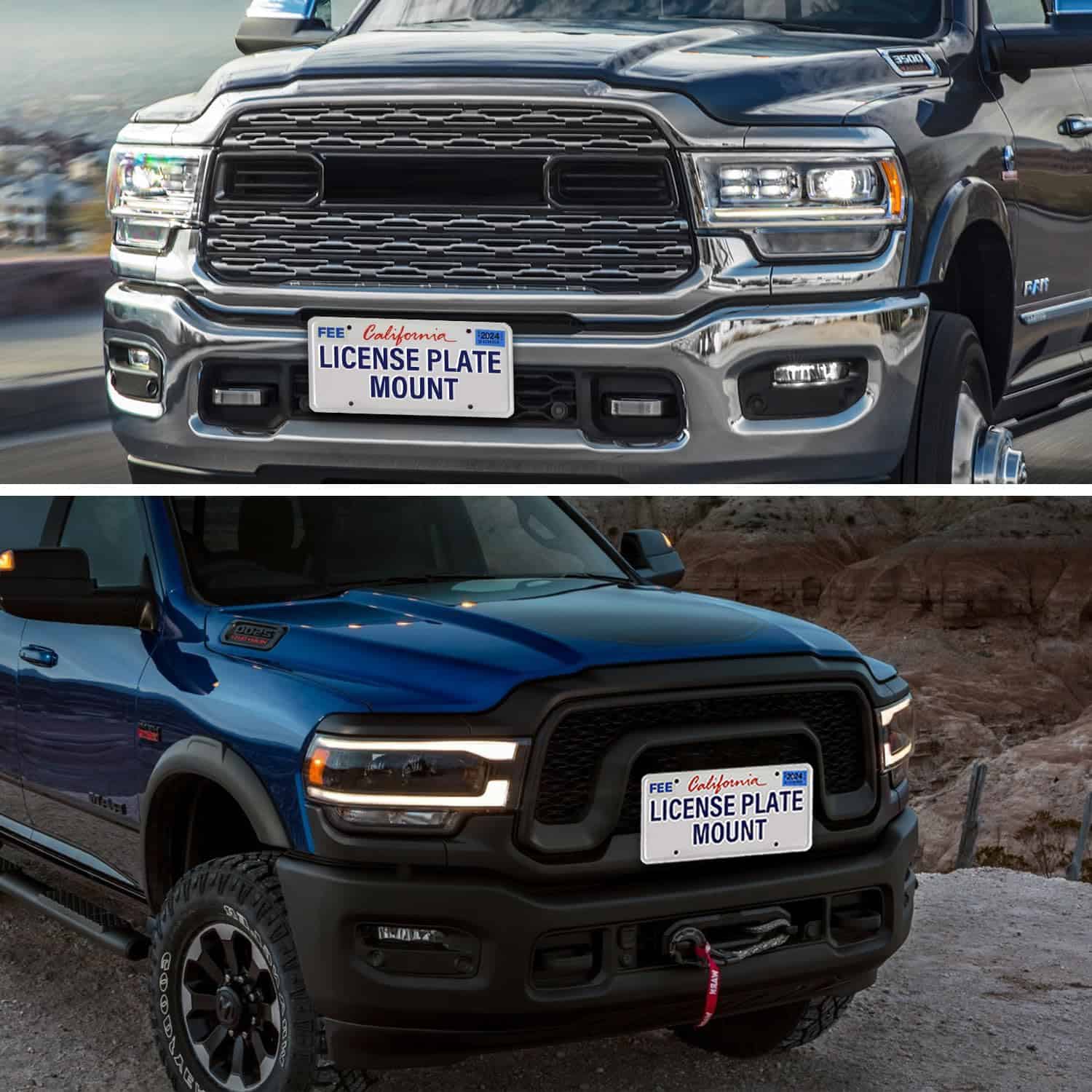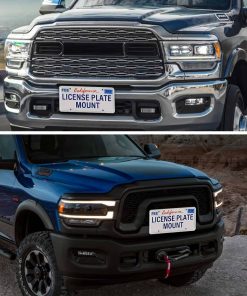 1. SOPORTE DE PLACA DE MATRÍCULA PARA PARACHOQUES DELANTERO: El soporte de placa de matrícula se puede montar directamente en el parachoques delantero de su automóvil, compatible con Ram 1500 5ta gen 2019-2024, 1500 Classic 4ta gen 2019-2024, 2500 5ta gen 2019-2024, 3500 5ta gen 2019-2024.
