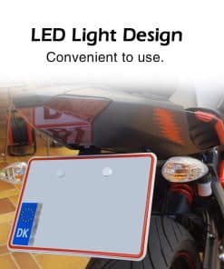 MULTIFUNCIONAL El soporte de placa de matrícula para motocicleta tiene múltiples funciones. El soporte de placa de matrícula para motocicleta con luces LED también se puede utilizar como guardabarros para ayudar a limpiar la motocicleta. Muy conveniente y práctico, es un accesorio ideal para su motocicleta.