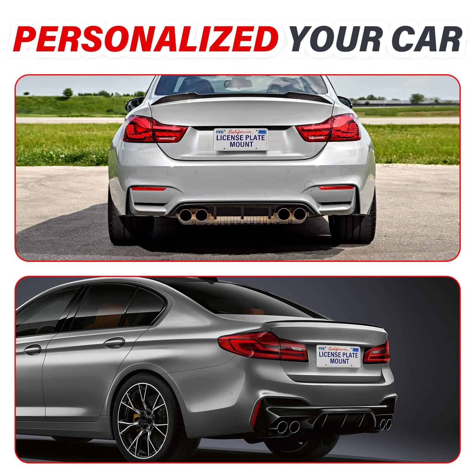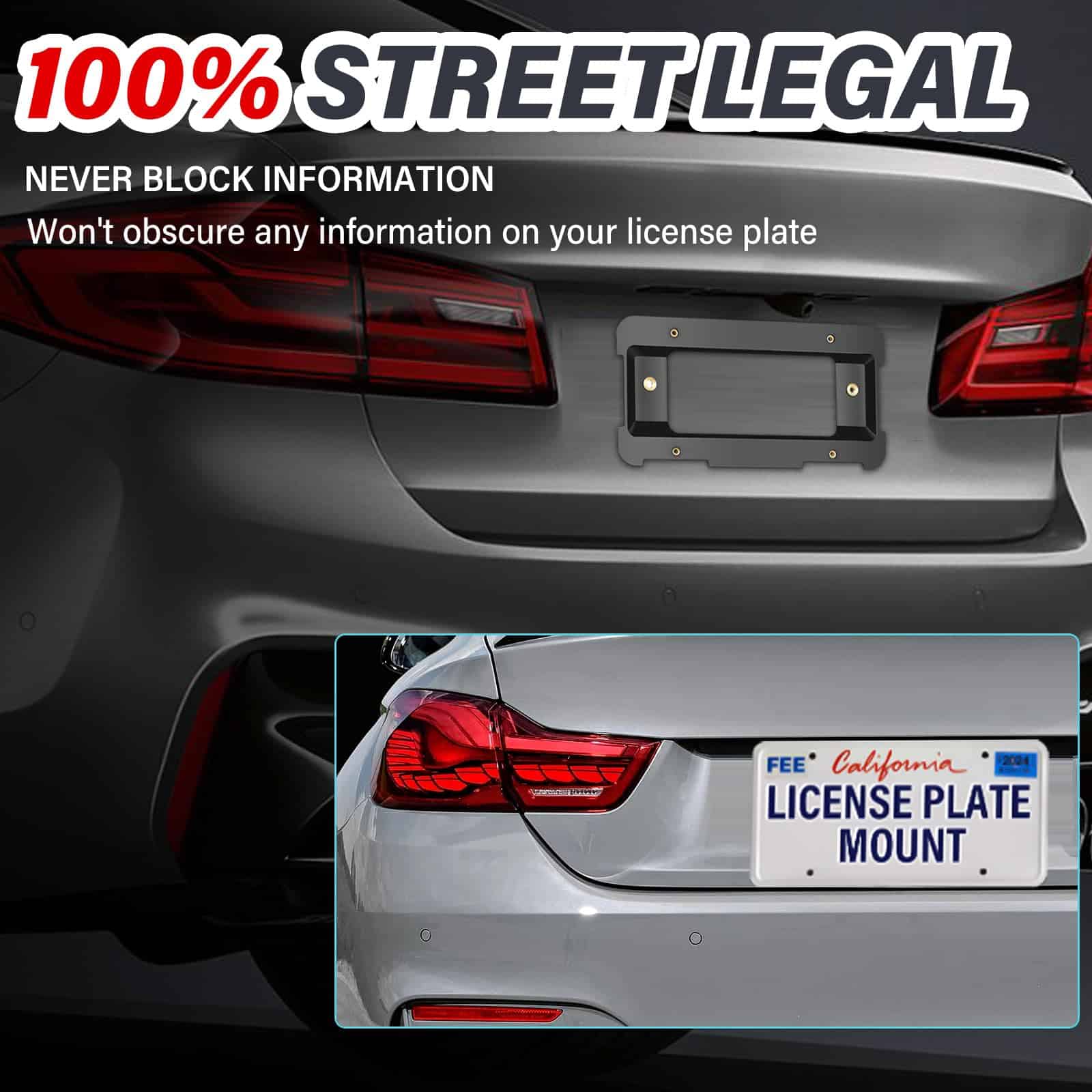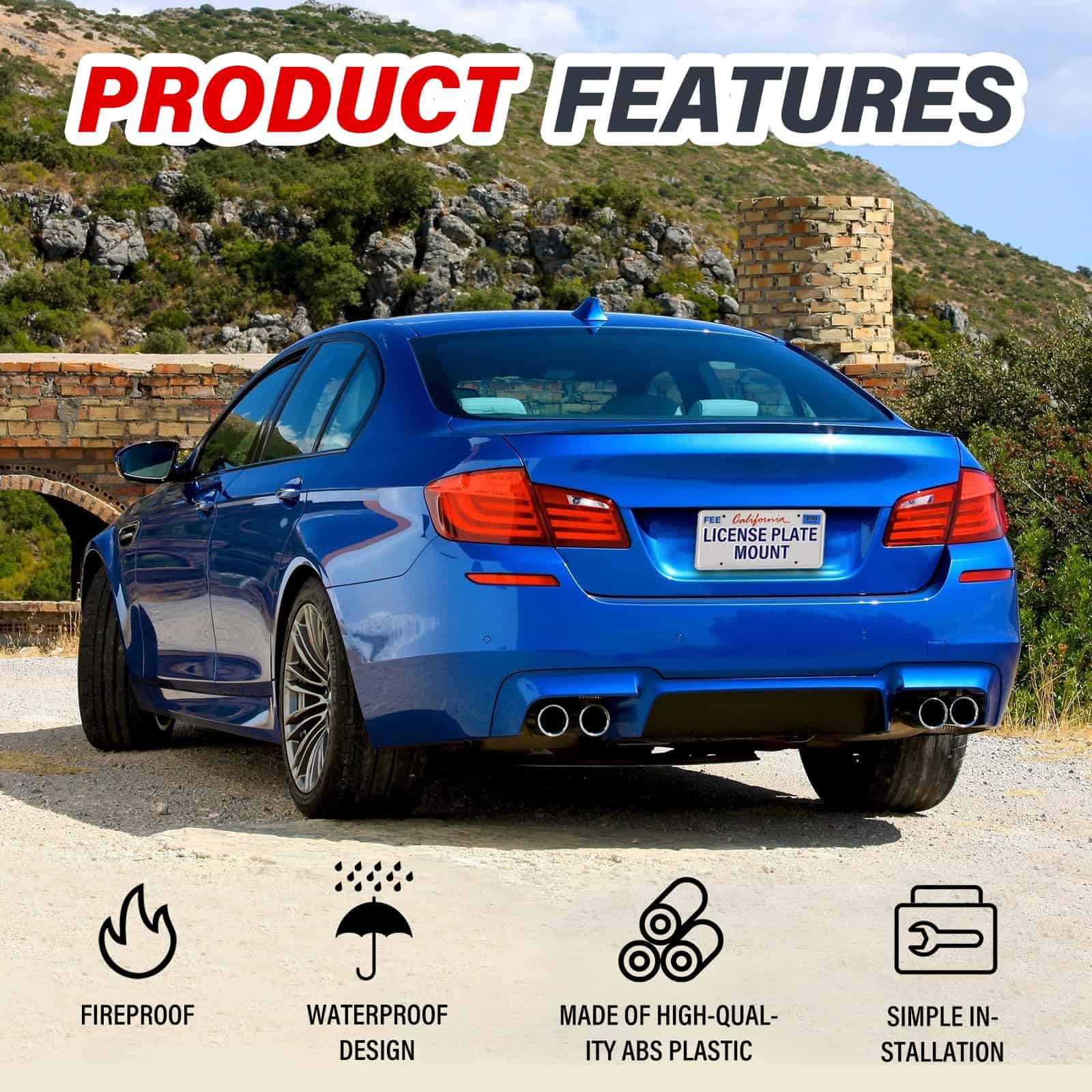 1. SOPORTE DE MATRÍCULA FRONTAL: El soporte de matrícula se puede montar directamente en el parachoques delantero de su automóvil, compatible con modelos apropiados.