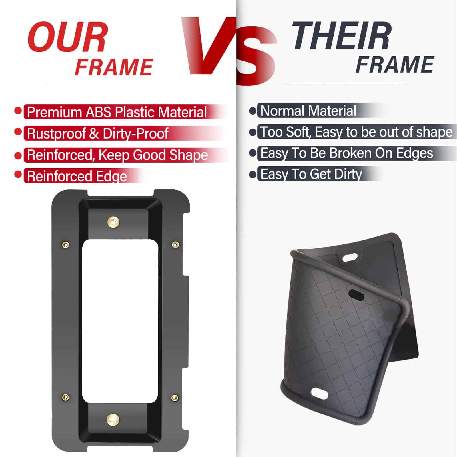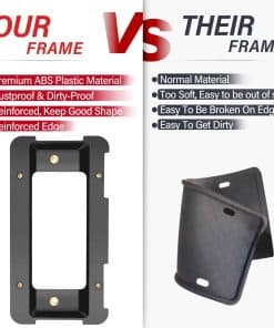 3. DURADERO: Nuestro soporte de matrícula para remolque, hecho de una aleación de aluminio de alta resistencia, recubrimiento en polvo negro en la superficie, tratamiento fino, larga vida útil, incluso si el viento y la lluvia durante años, estos marcos no se oxidarán.