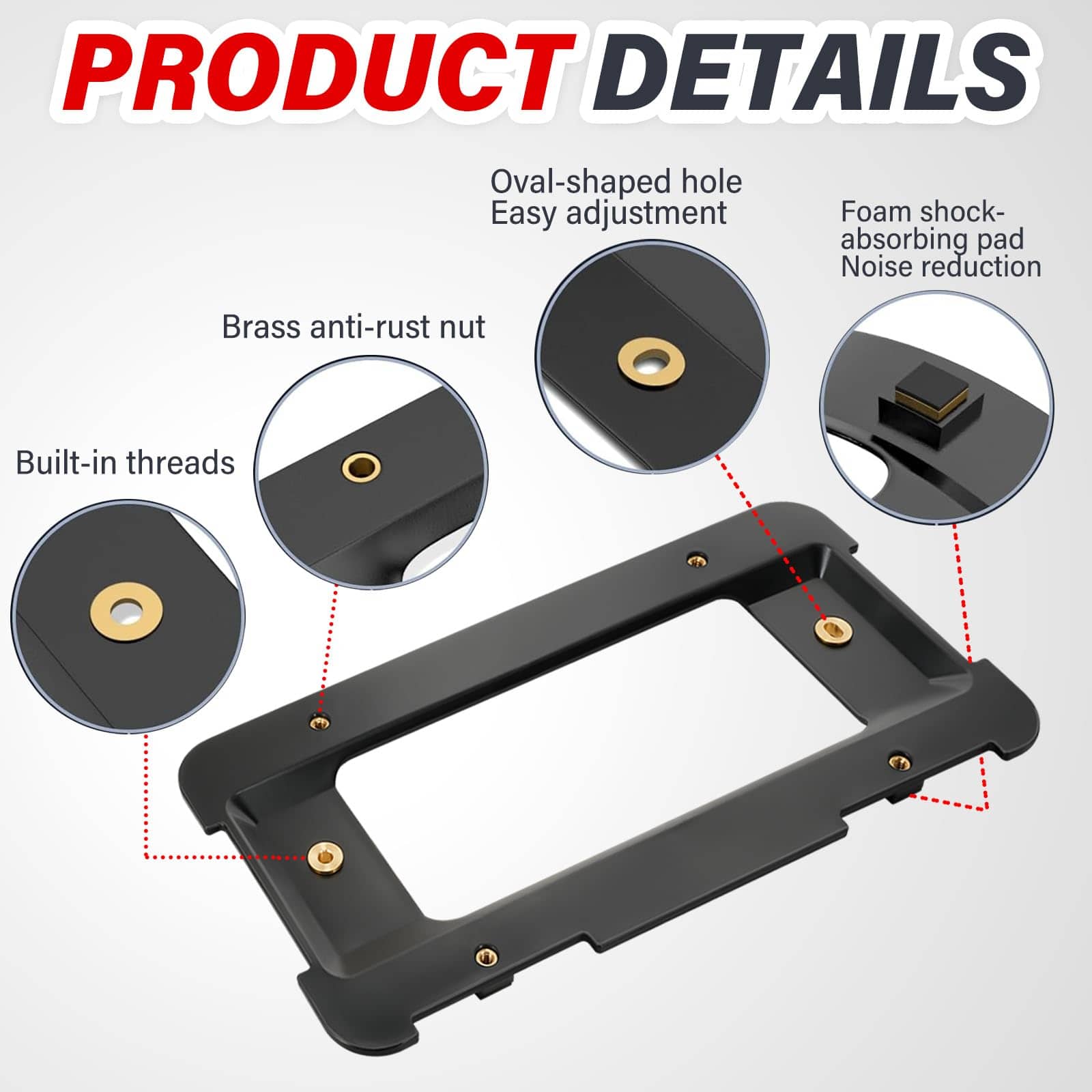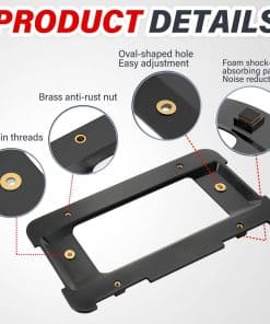 El soporte de matrícula negro sin perforaciones ofrece una fácil instalación, eliminando la necesidad de taladrar o realizar modificaciones. Hecho de una aleación de aluminio duradero con un recubrimiento en polvo, garantiza un rendimiento duradero sin oxidarse. No propenso a desvanecerse o decolorarse por la exposición prolongada al sol, la lluvia y otras condiciones climáticas. Combinando con el color de su automóvil, el soporte de matrícula negro ayuda a que el soporte de matrícula se integre con el parachoques de su automóvil, creando un aspecto elegante y aerodinámico.