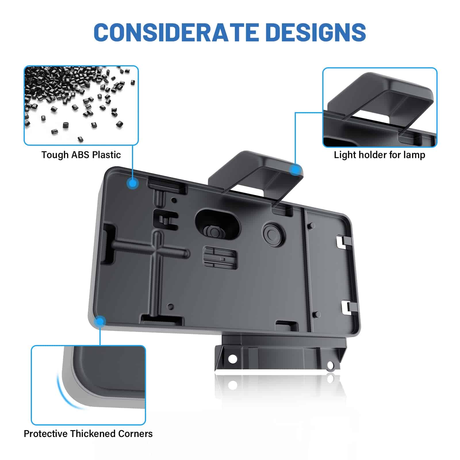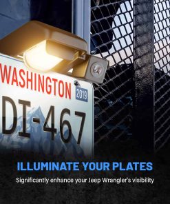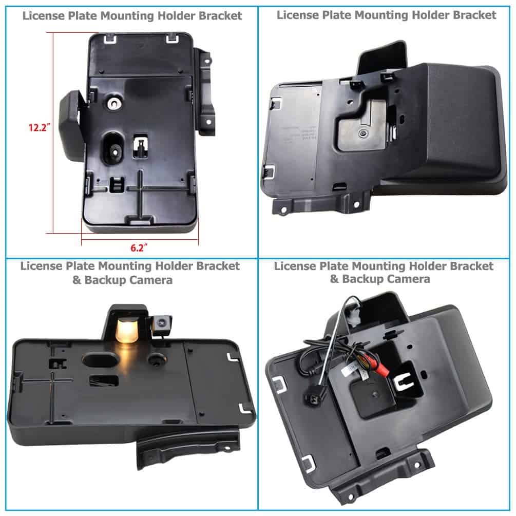 Este soporte de placa de matrícula y cámara de reversa está diseñado para adaptarse a los modelos Jeep Wrangler JK Unlimited del 2007 al 2017. Fabricado en plástico ABS de alta calidad, nunca se oxida, corroe ni pela. Fácil instalación, no se requiere perforar ni cortar. La cámara de visión trasera cuenta con un ángulo de visión amplio de 150 grados con lente de 1.7mm. Excelente visión nocturna, cuenta con 4 IRs para proporcionar visión incluso en la oscuridad. Resistente al agua con clasificación IP68, a prueba de golpes, anti-interferencias y resistente a temperaturas altas/bajas. Incluye 1 soporte de placa de matrícula, 1 cámara de reversa, 1 bombilla de luz, 1 conector de video RCA para Jeep JK y algunos herrajes necesarios. Aproximadamente 31.5 x 16.3 x 0.6cm.