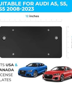 Soporte de Placa de Matrícula Trasera para Audi A5 S5 RS5 2008-2024, Juego de Soporte con 8 Pernos Únicos y Kit de Llaves, Kit de Montaje de Placa de Matrícula, Soportes de Placa de Calidad, Accesorios de Coche Premium. Este soporte de placa de matrícula trasera está diseñado específicamente para vehículos Audi A5 S5 RS5 2008-2024. Tiene un ajuste personalizado que evita que cubra la placa de matrícula y te ayuda a ahorrar en multas. Está fabricado con plástico premium y resistente que es resistente a la corrosión, al desgaste y a la herrumbre. Los 8 pernos de seguridad incluidos mantienen la placa de forma segura. La instalación es sencilla y no requiere herramientas adicionales. ¡Hazte con este soporte de alta calidad y disfruta de una experiencia premium en accesorios automotrices!