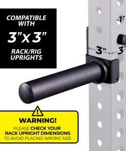 1. Compatible con Racks de 3×3 Pulgadas: Diseñado específicamente para encajar en racks de tubo de 3×3 pulgadas con agujeros de 1″, asegurando un ajuste perfecto para tu configuración de rack de potencia o sentadillas.