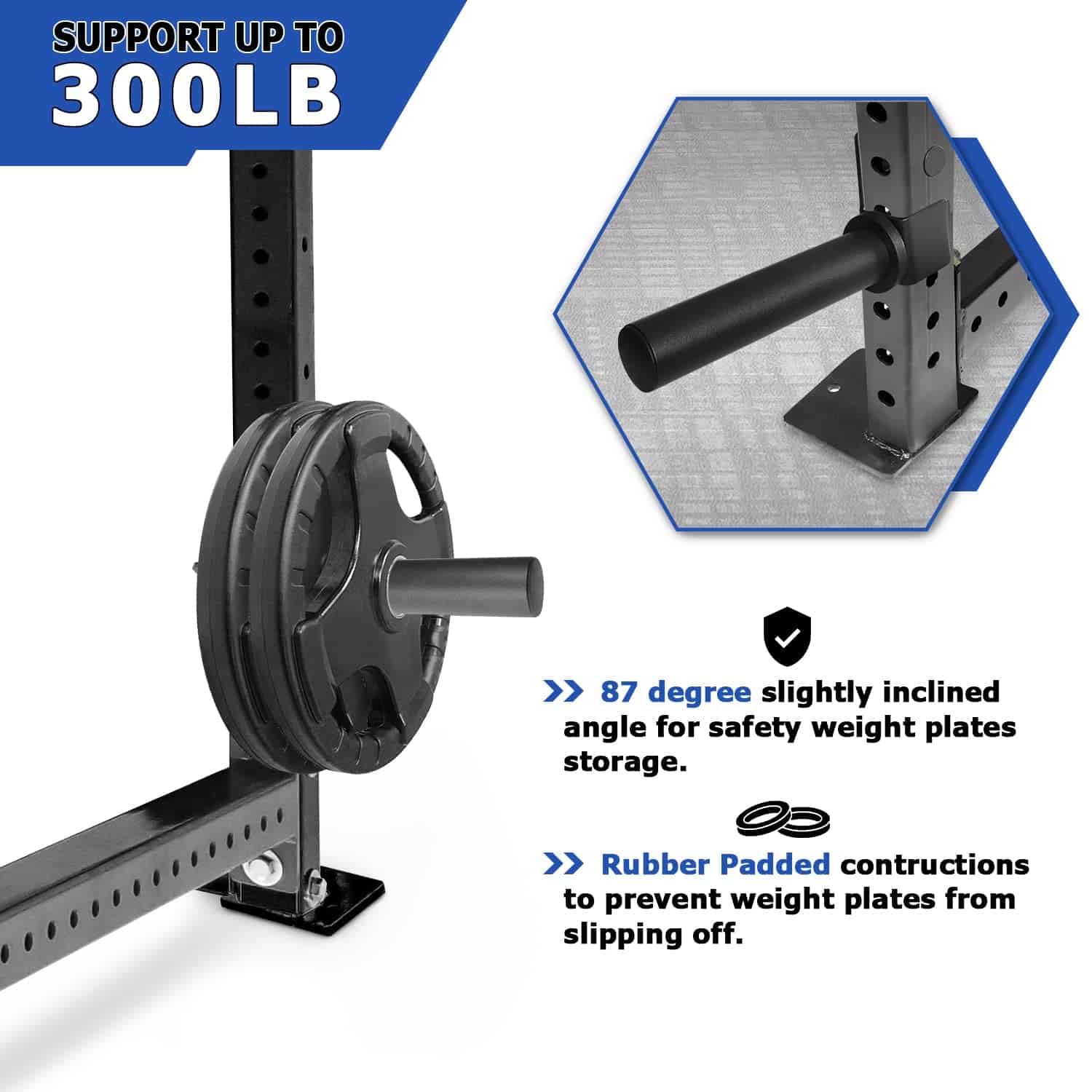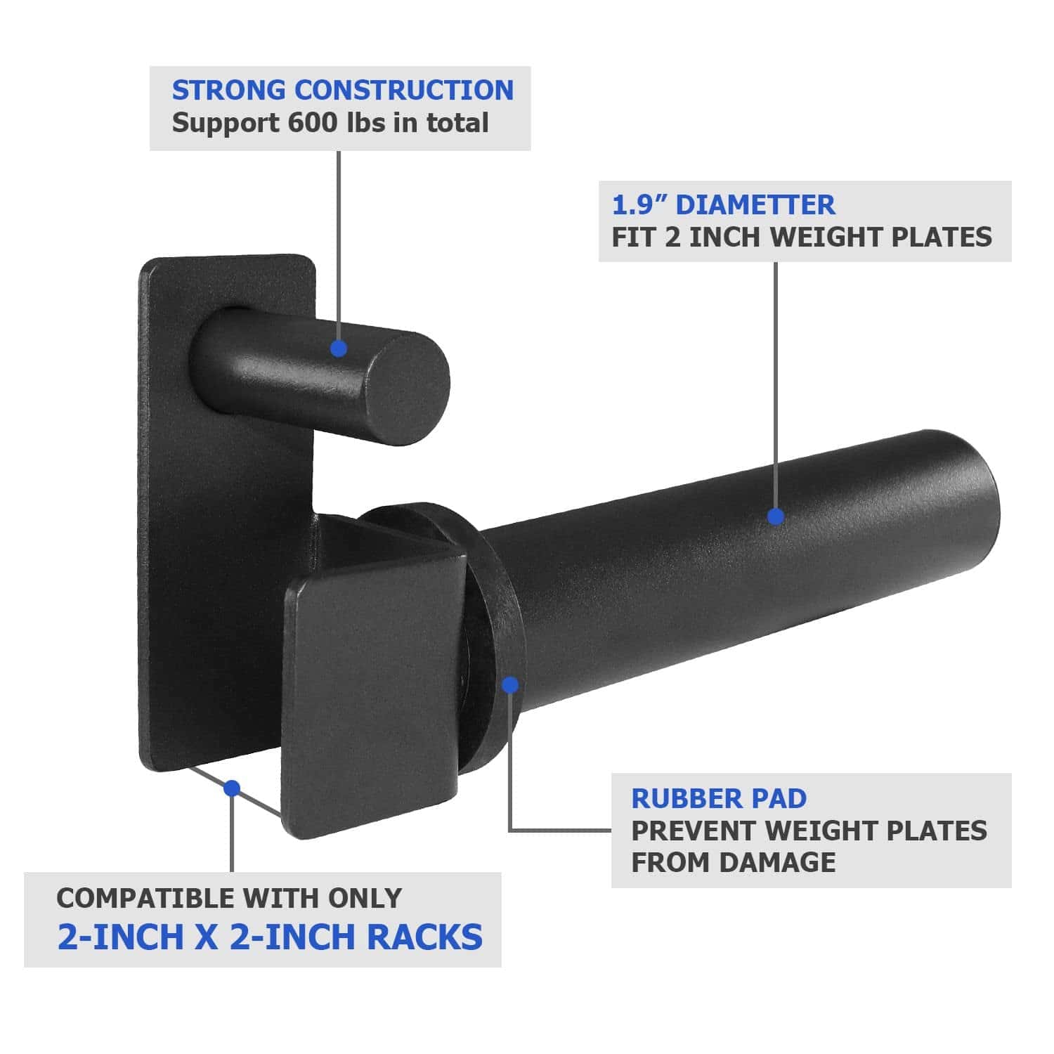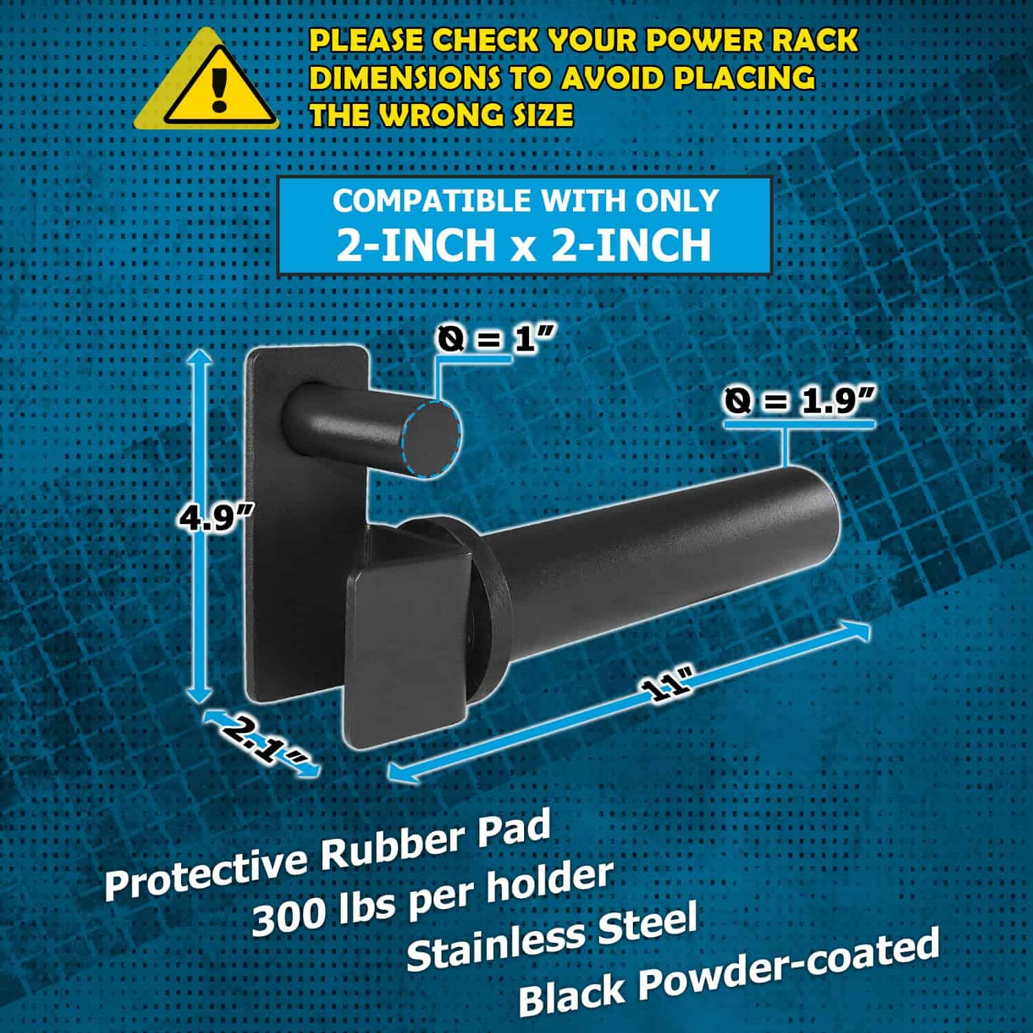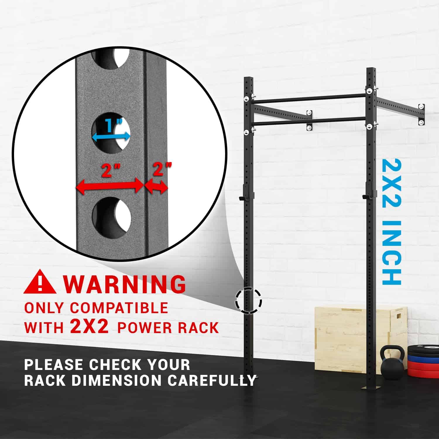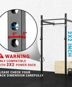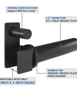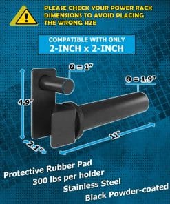 1. COMPATIBLE SOLO CON RACKS DE 2 PULGADAS x 2 PULGADAS, 1 ORIFICIO Y 2 PLACAS DE PESO, PERO NO TODOS. Por favor, tenga en cuenta que este tipo no es compatible con racks de potencia de 3×2 y 3×3. (SERÍA MUY APRECIADO SI VERIFICA LAS DIMENSIONES DE SU RACK ANTES DE REALIZAR UNA COMPRA PARA EVITAR UN INCOMODO PROCESO DE DEVOLUCIÓN).