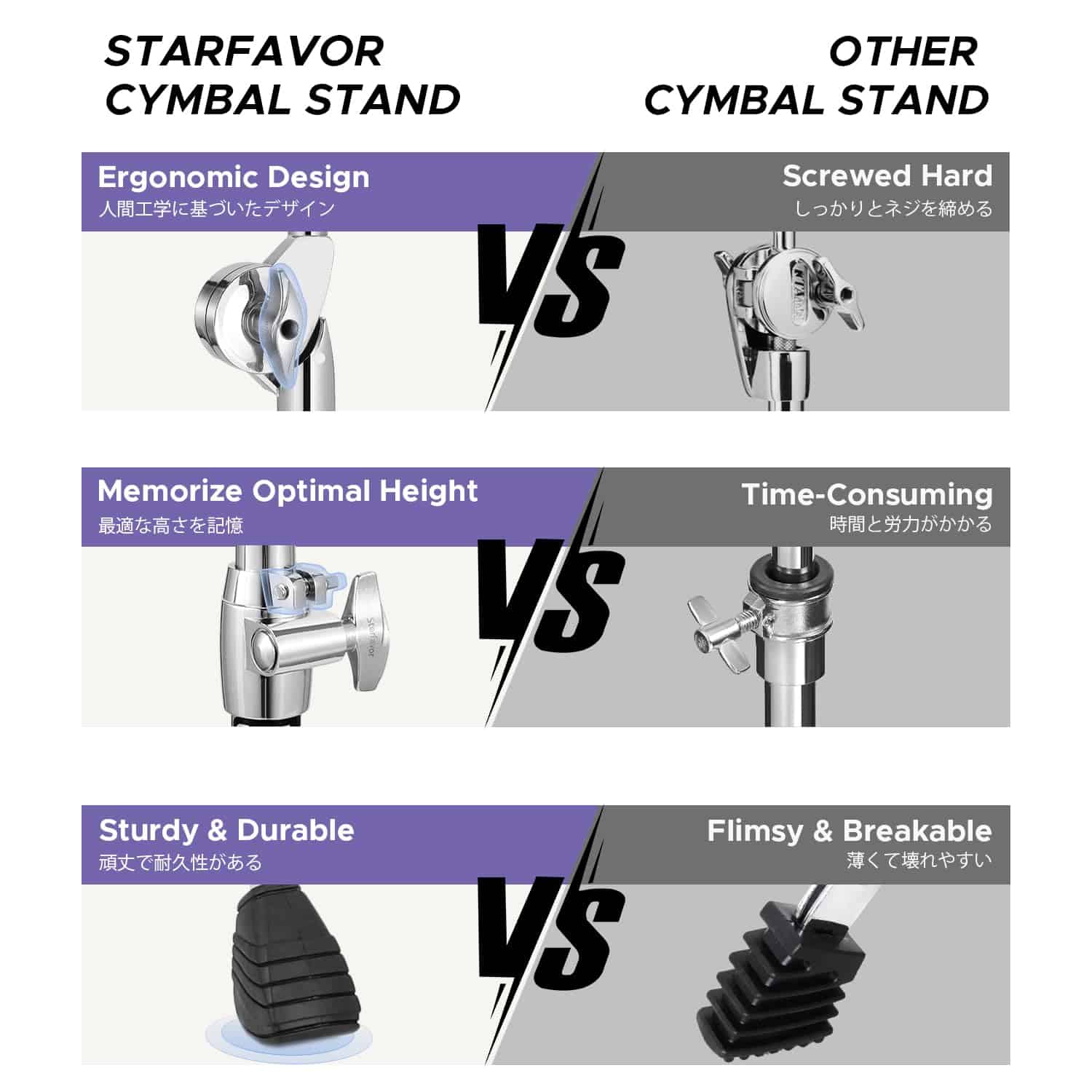 Starfavor es una marca joven, pero tenemos el espíritu más ingenioso, verteremos amor por la música y el arte en cada uno de nuestros productos. Puede elegir entre marcas de renombre mundial como PDP, DW, Gibraltar, etc. Sin embargo, el alto costo y el exceso de rendimiento puede no ser la mejor opción para un principiante o un practicante avanzado de la batería. Nuestro excelente soporte cuenta con cuerpo de metal totalmente plateado, rango de ajuste de altura de 22 pulgadas a 49 pulgadas, bloqueo de memoria, patas de soporte de 16.5 pulgadas de largo para garantizar la estabilidad. Elija Starfavor, obtendrá 12 meses de soporte de servicio de producto limitado. Comuníquese con nosotros si tiene algún problema, le responderemos lo antes posible.