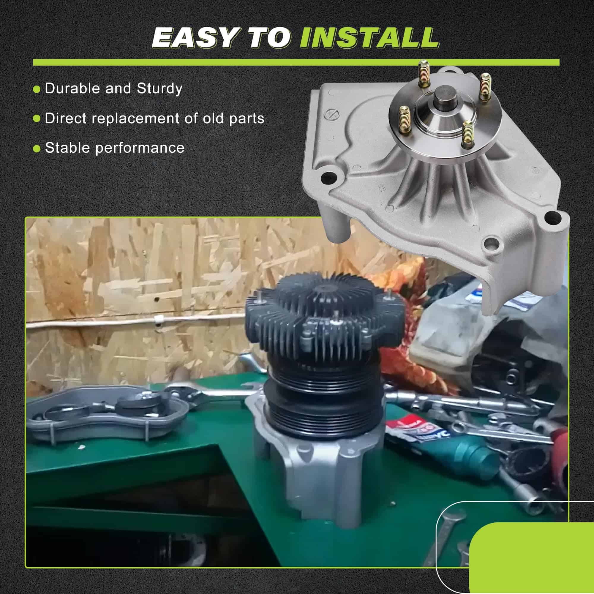 4. Experiencia funcional Mejore la eficiencia del motor con este soporte de polea, que desempeña un papel en el mantenimiento de la circulación de agua y el control de temperatura.