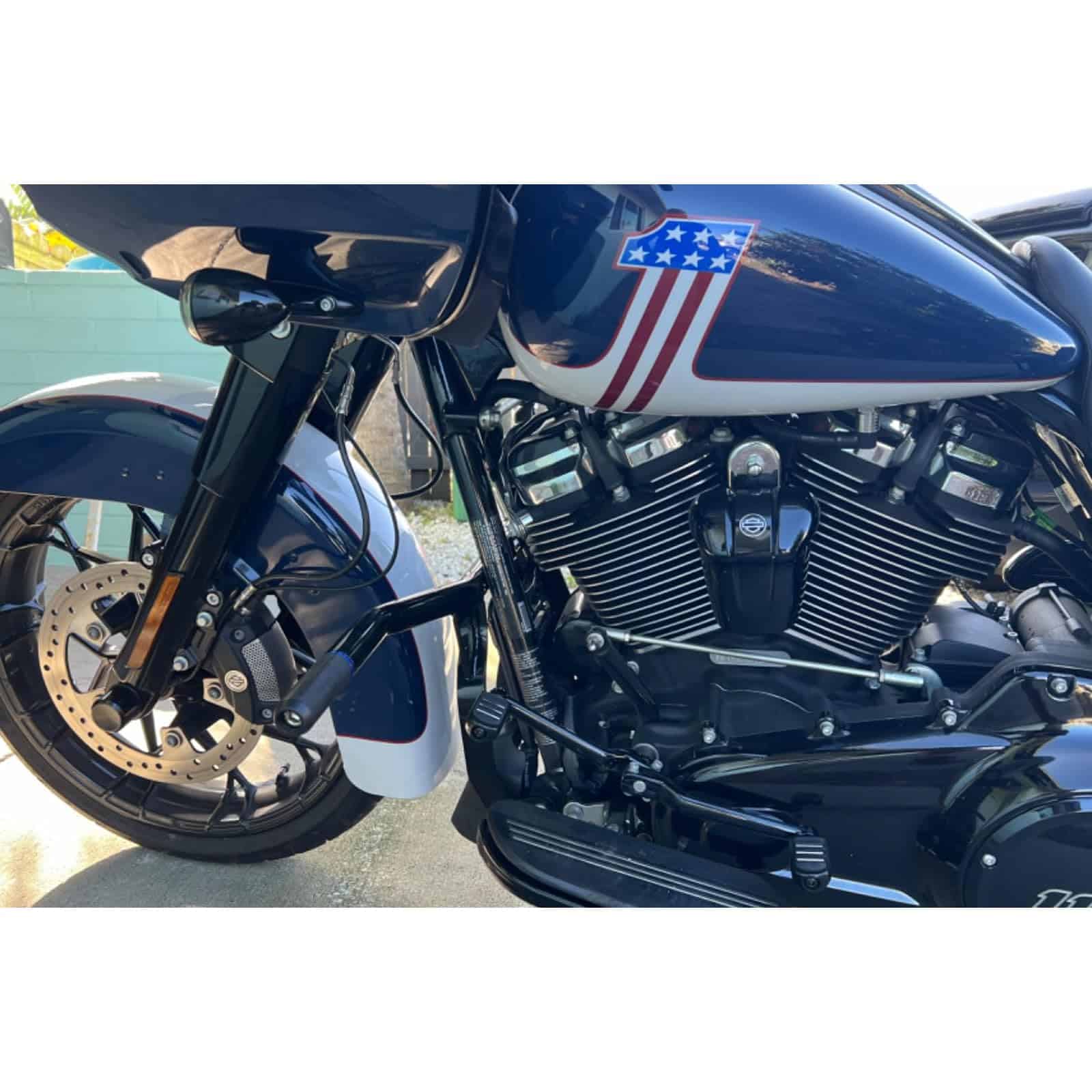 Especificaciones: Tipo: Protector de Barra de Choque para Conductor. Condición: Nuevo. Color: Negro. Material: Hecho de aluminio billet resistente y acero de calidad premium. Características: Las barras de motor personalizadas proporcionan un lugar más cómodo para el conductor. Disfruta de tu tiempo en la carretera, gran sensación para conductores al viento. Instalación fácil, te permite quitarlas fácilmente cuando no las necesitas. Compatibilidad: Para Harley Davidson Touring 09-13. Paquete: 1 x soporte de motor (Instrucciones no incluidas).