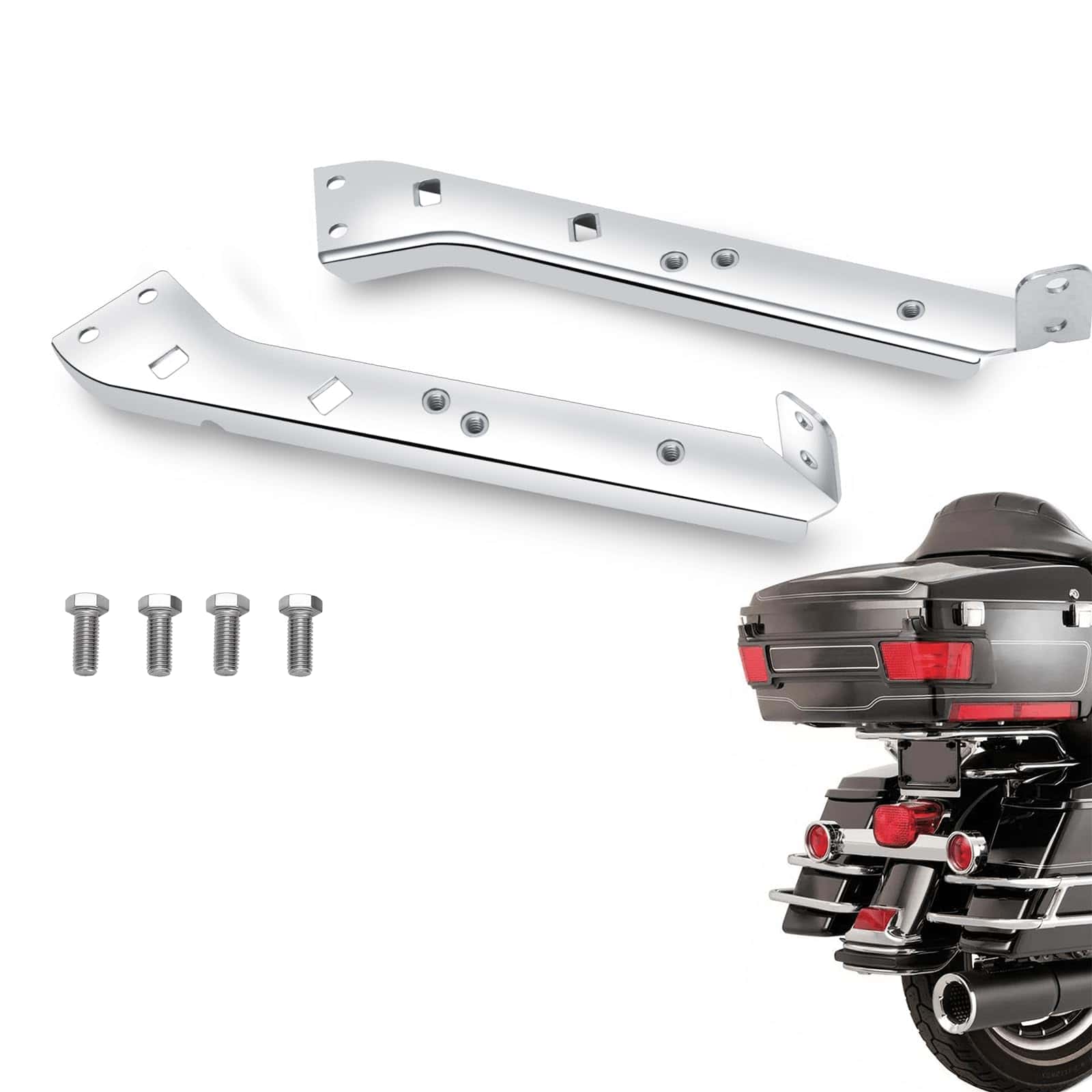 Use este soporte de riel de saddlebag de alta resistencia para adaptarse a los modelos Harley Touring como los modelos 1985-2008 FLT, FLHT.