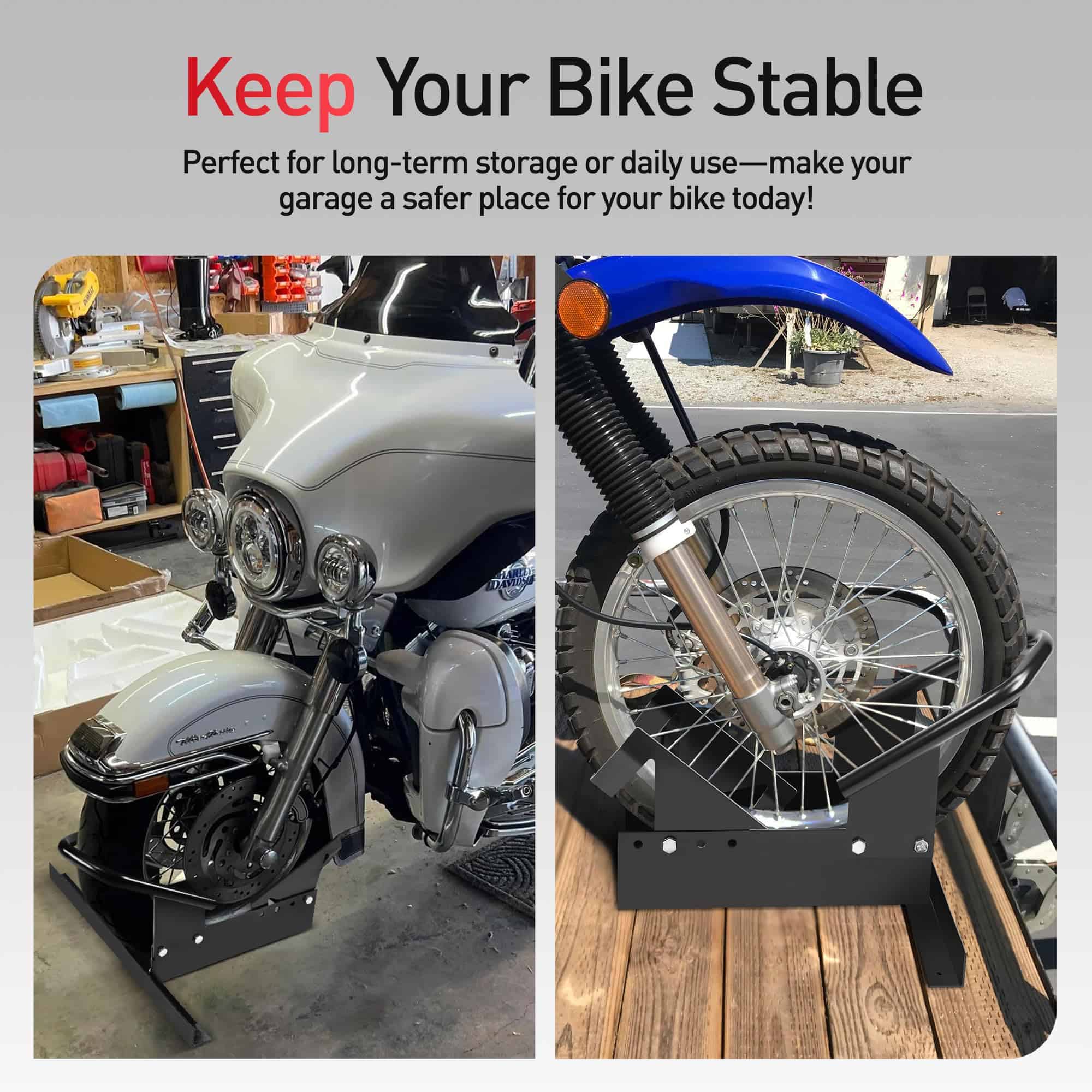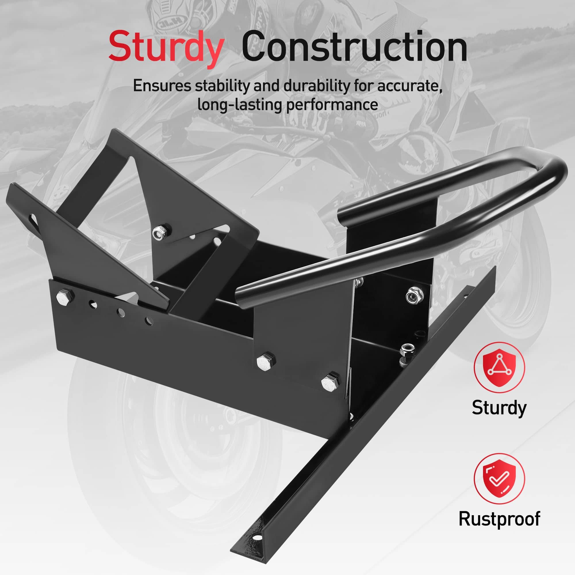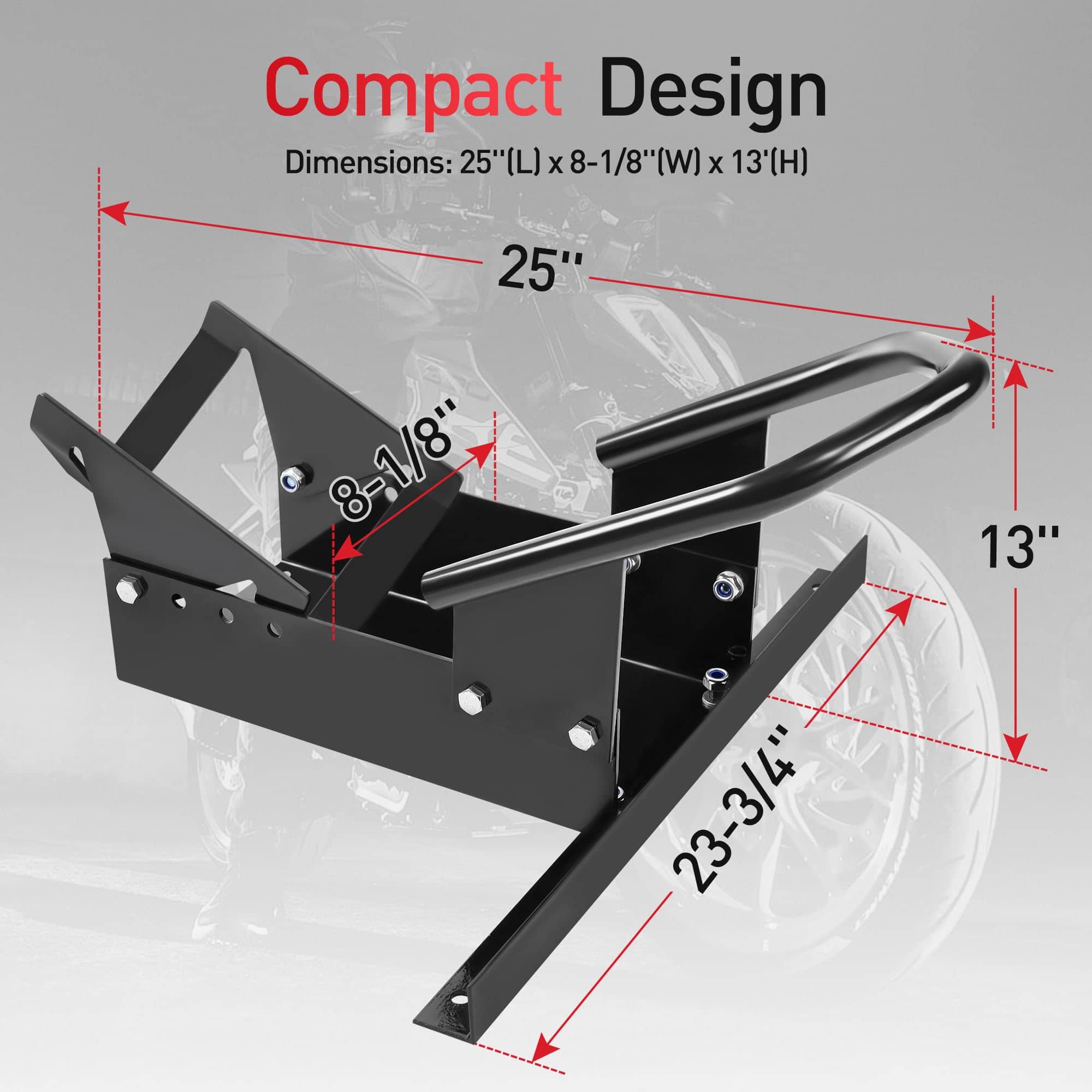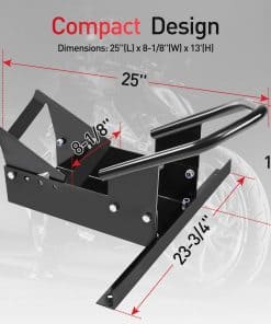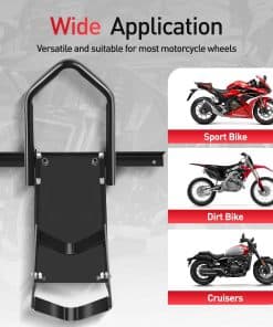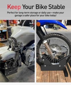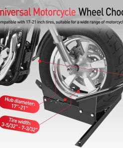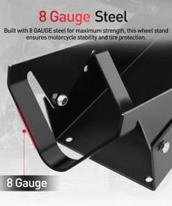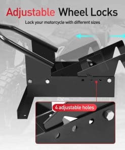 Soporte de rueda delantera de motocicleta JY PERFORMANCE, resistente soporte de rueda delantera para remolque, crucero, deportivas y motos de tierra, capacidad de 1800 lb, soporte de rueda ajustable para ruedas de 15″-21″. El soporte de rueda delantera de motocicleta JY PERFORMANCE es la solución perfecta para transportar, almacenar y mantener seguras tus motos. Con una capacidad de 1800 libras y un ajuste de rueda que va desde 15 pulgadas hasta 21 pulgadas, este soporte es versátil y práctico. Construido en acero de calibre 8, el soporte de rueda brinda la resistencia y estabilidad necesarias para sostener motocicletas de manera segura. Su diseño vertical evita que la motocicleta se vuelque o se desplace, lo que lo convierte en un accesorio esencial para remolques, camiones o almacenamiento en garajes. Asegúrate de elegir el soporte de rueda delantera JY PERFORMANCE para una mayor comodidad y seguridad al transportar tus motocicletas.
