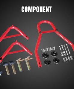 1. Construcción de Acero Duradero: El soporte de motocicleta adopta una construcción premium de acero industrial con acabado en polvo rojo, resistente a la corrosión y que no se deforma fácilmente.