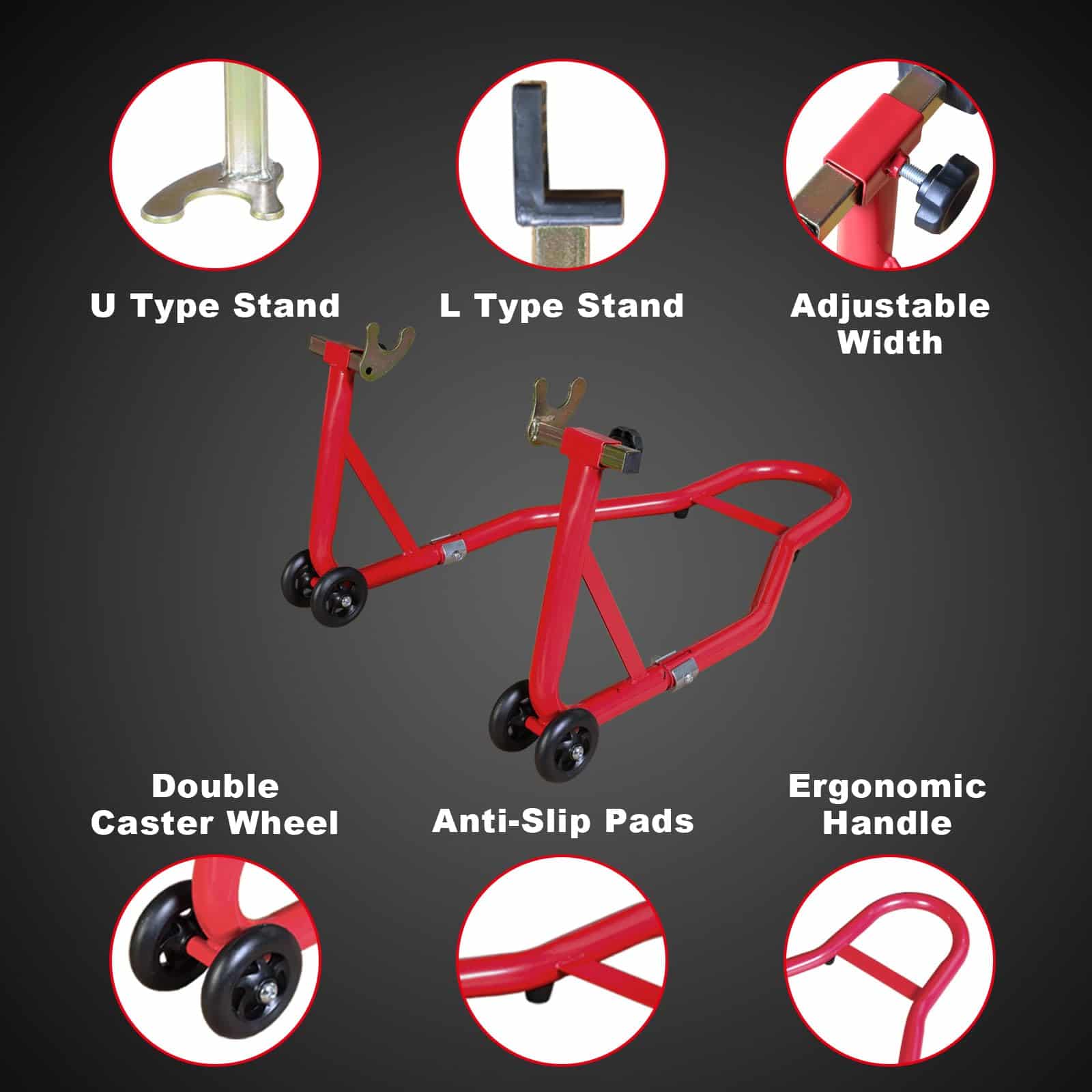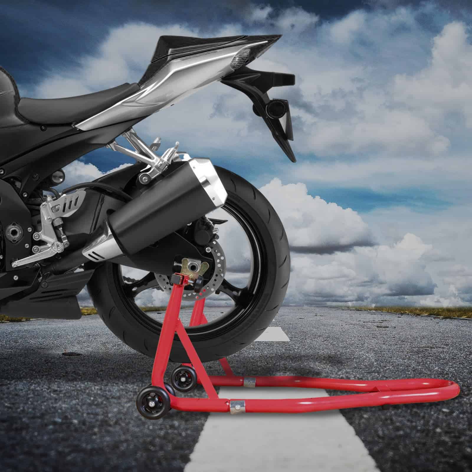 5. Múltiples Usos: Te será de gran ayuda para la limpieza de cadenas, cambio de neumáticos y aceite con los soportes delantero y trasero para motocicletas. Perfecto para reparaciones en casa o en el taller.